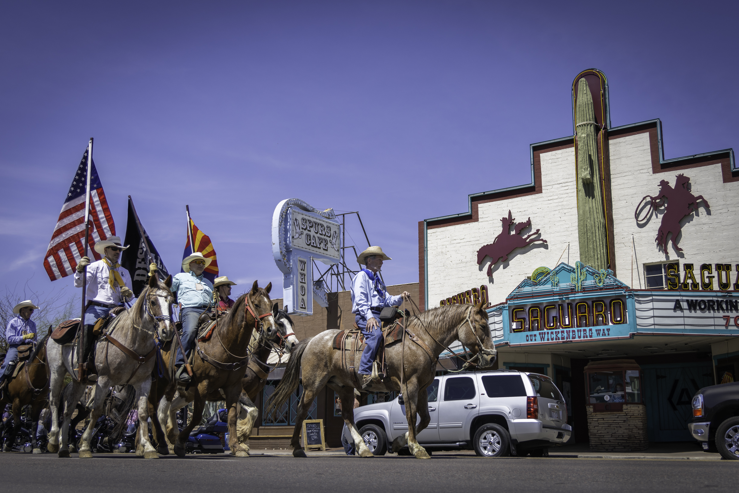 Annual Desert Caballeros Riders departing Wickenburg for traditional desert ride