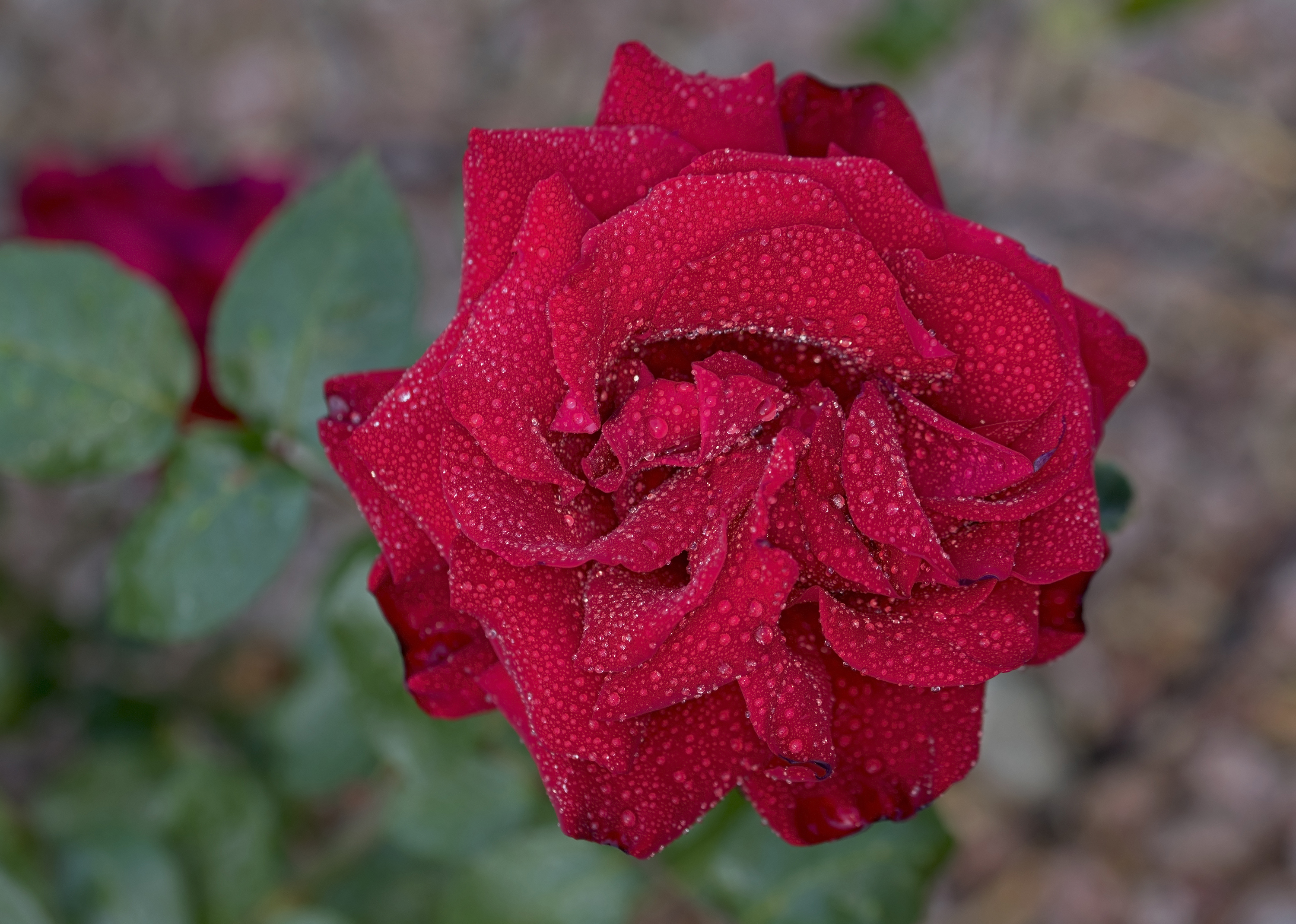 Cherry Tomato after a rain storm with reflections in the rain drops.