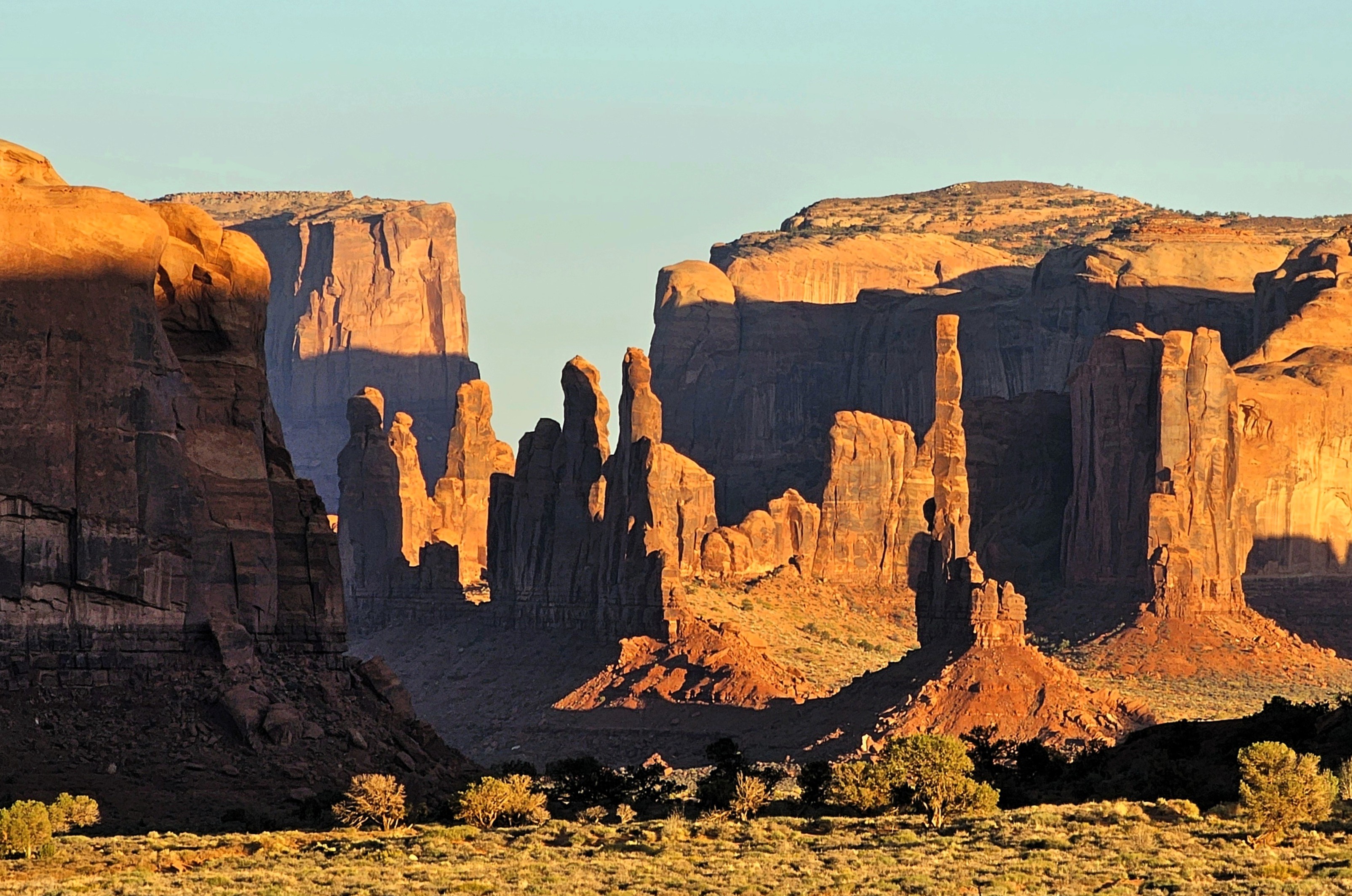 South aspect of Totem Pole and Tei Bi Chei, Monumnet Valley, at golden hour.
