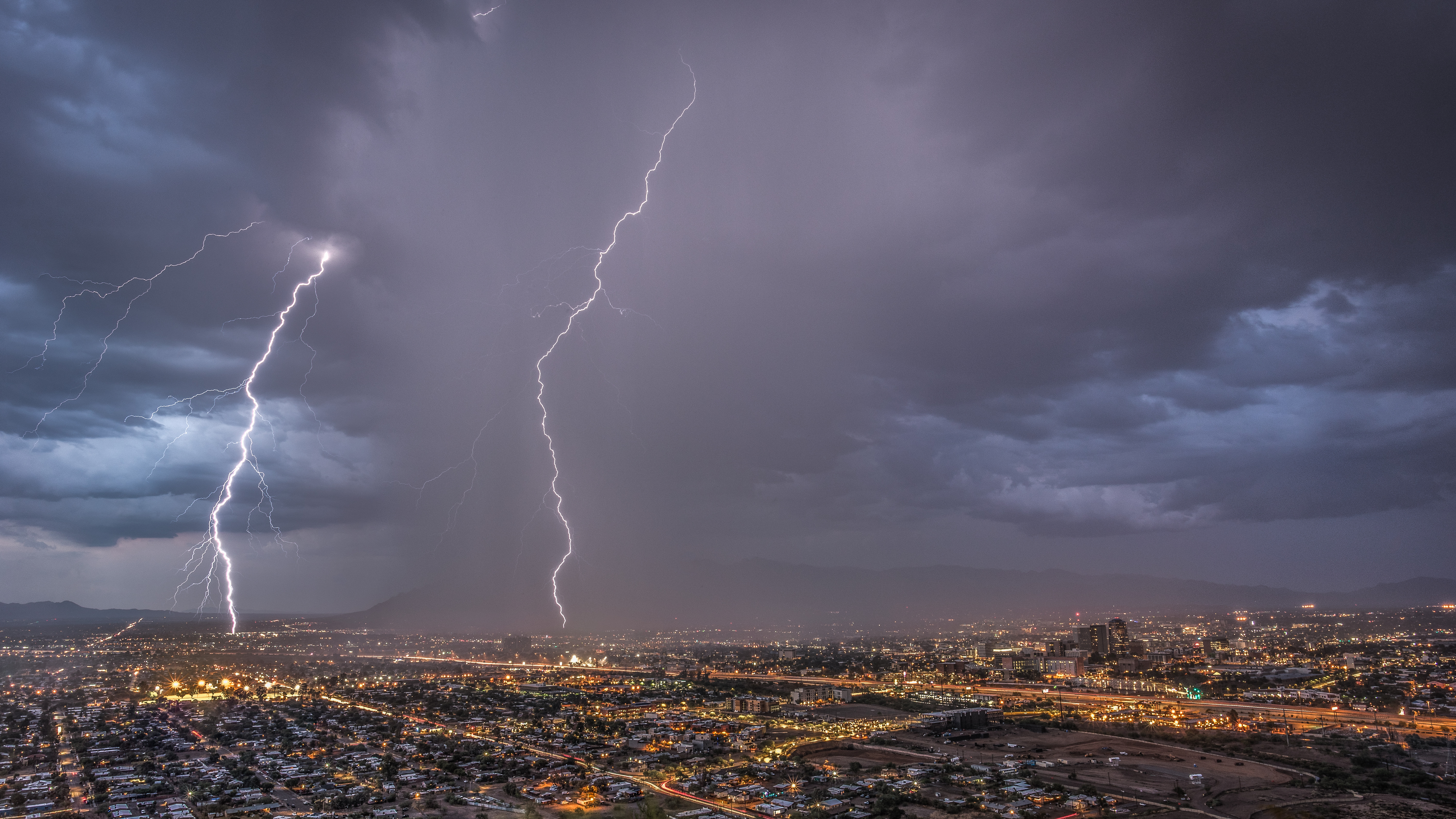 Lightning strikes caught from A Mountain in Tucson as a storm makes it's way through Oro Valley
