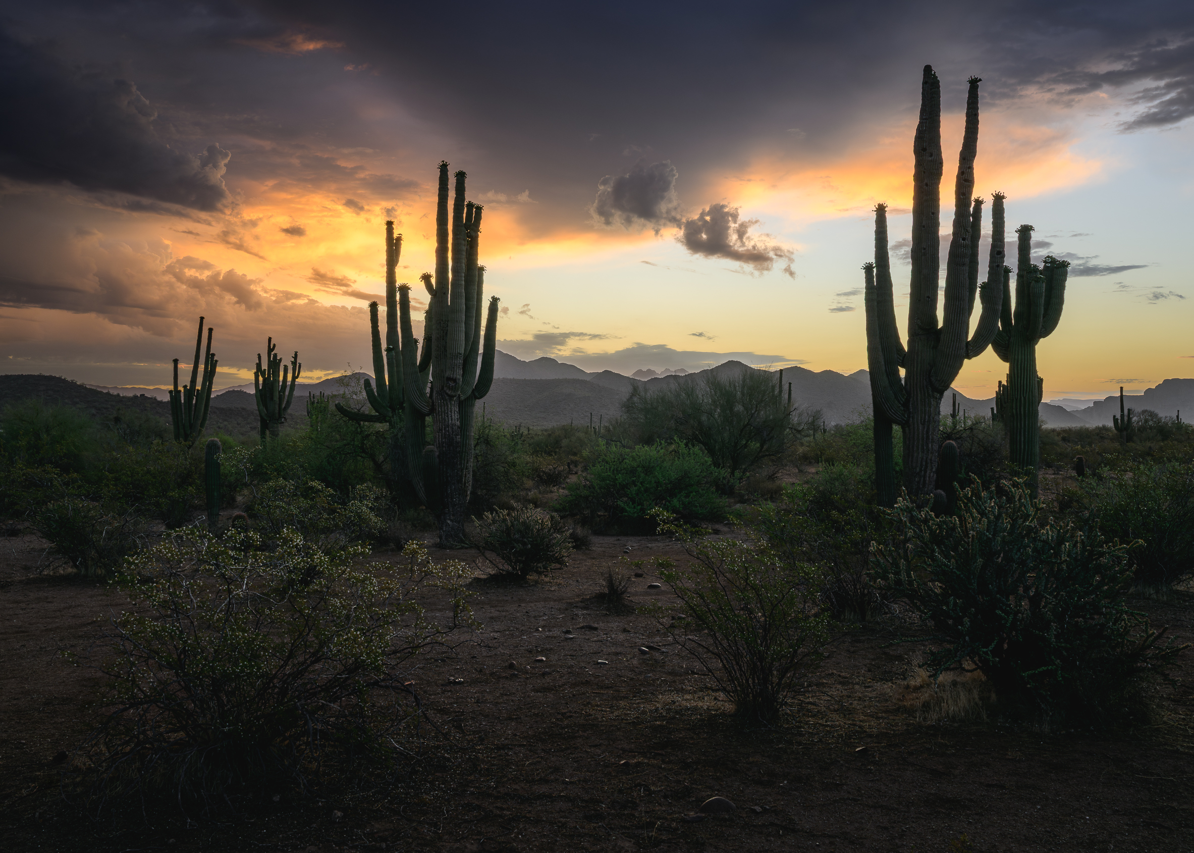 A stormy sunrise just after a heavy shower in the Tonto National Forest.