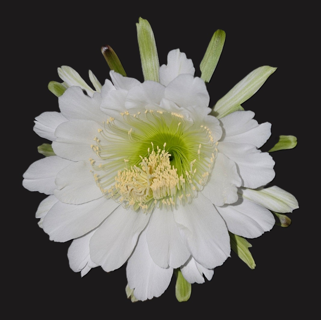 The soehrensia spachiana, commonly known as the golden torch cactus, blooms a beautiful fragfrant white flower that lasts the night and perhaps into the next early morning.