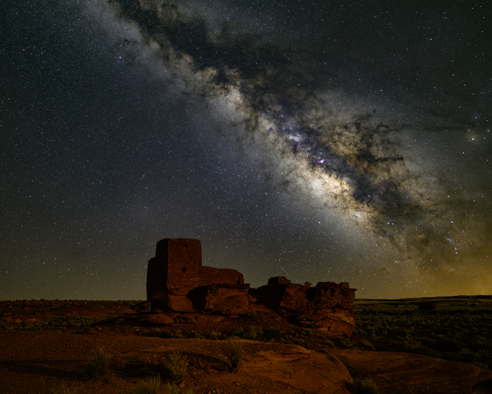 The Milky Way rises behind Wukoki Pueblo in Wupatki National Monument.
