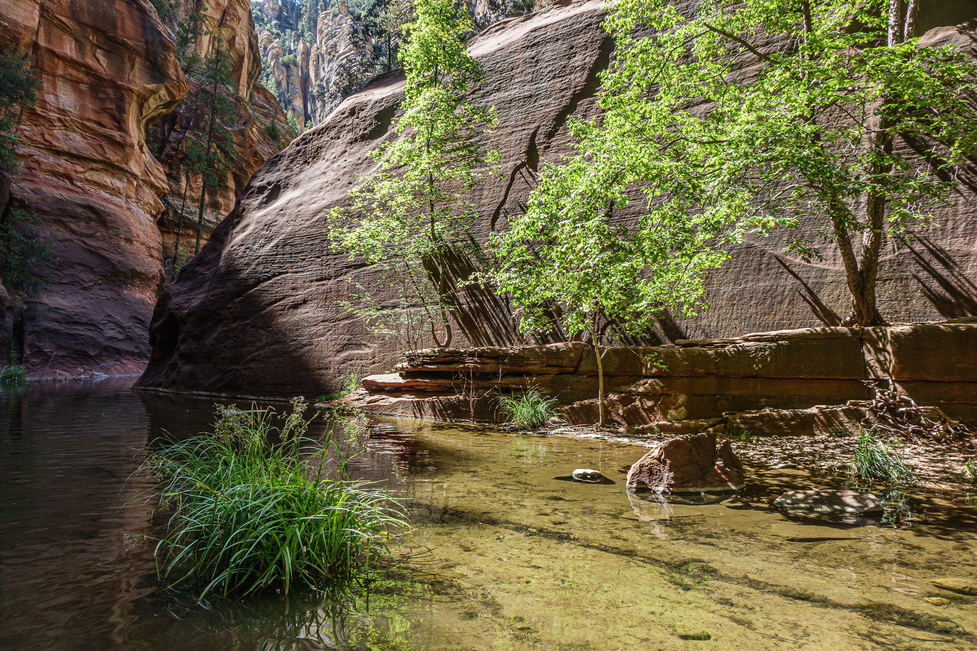 Water fills the canyon from wall to wall in this section of West Fork Oak Creek.