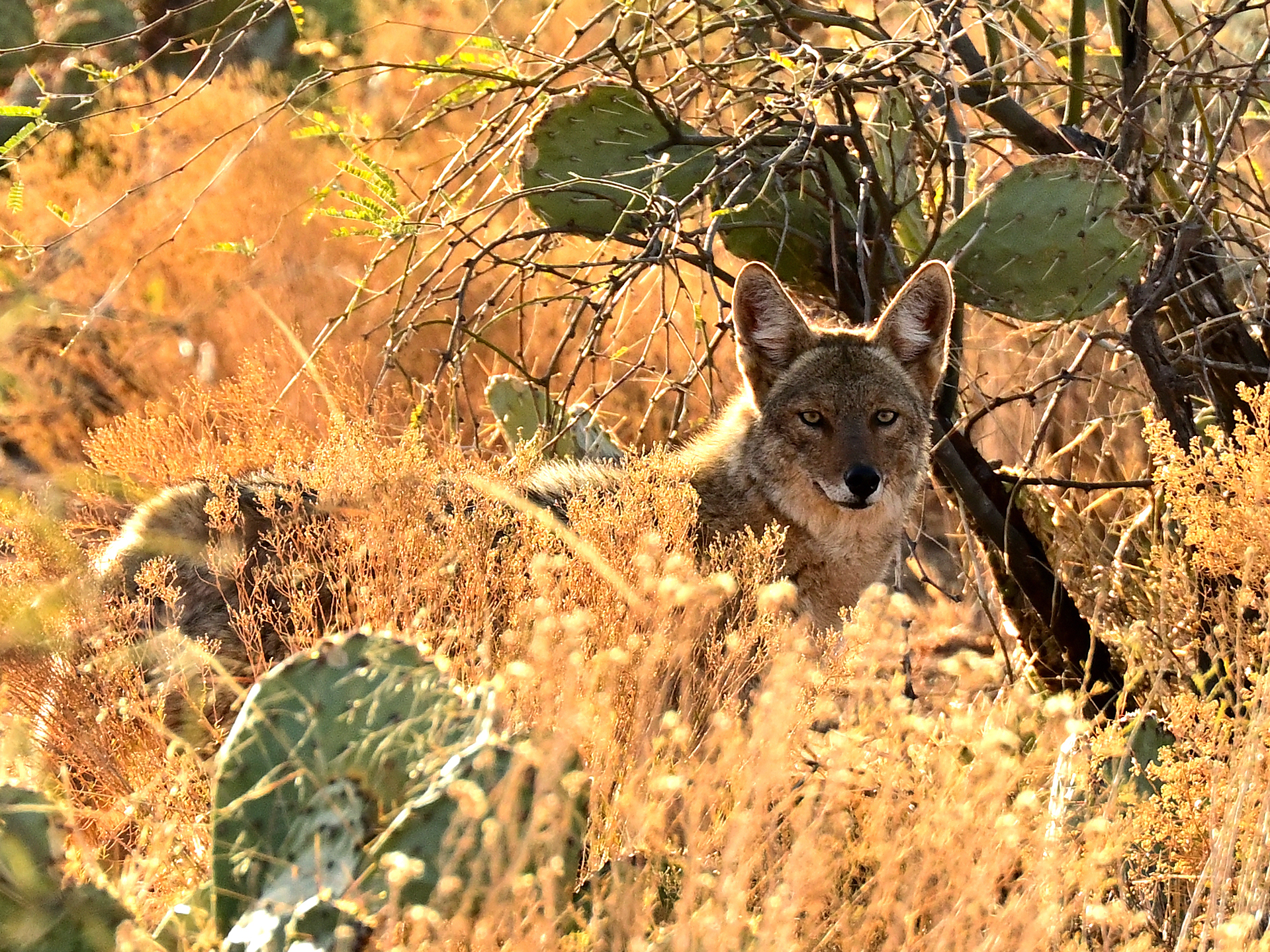 A Pyrrhuloxia pauses at sunrise on a desert perch, its crest glowing in the first warm light. A quiet moment of color and character from the Sonoran morning.
