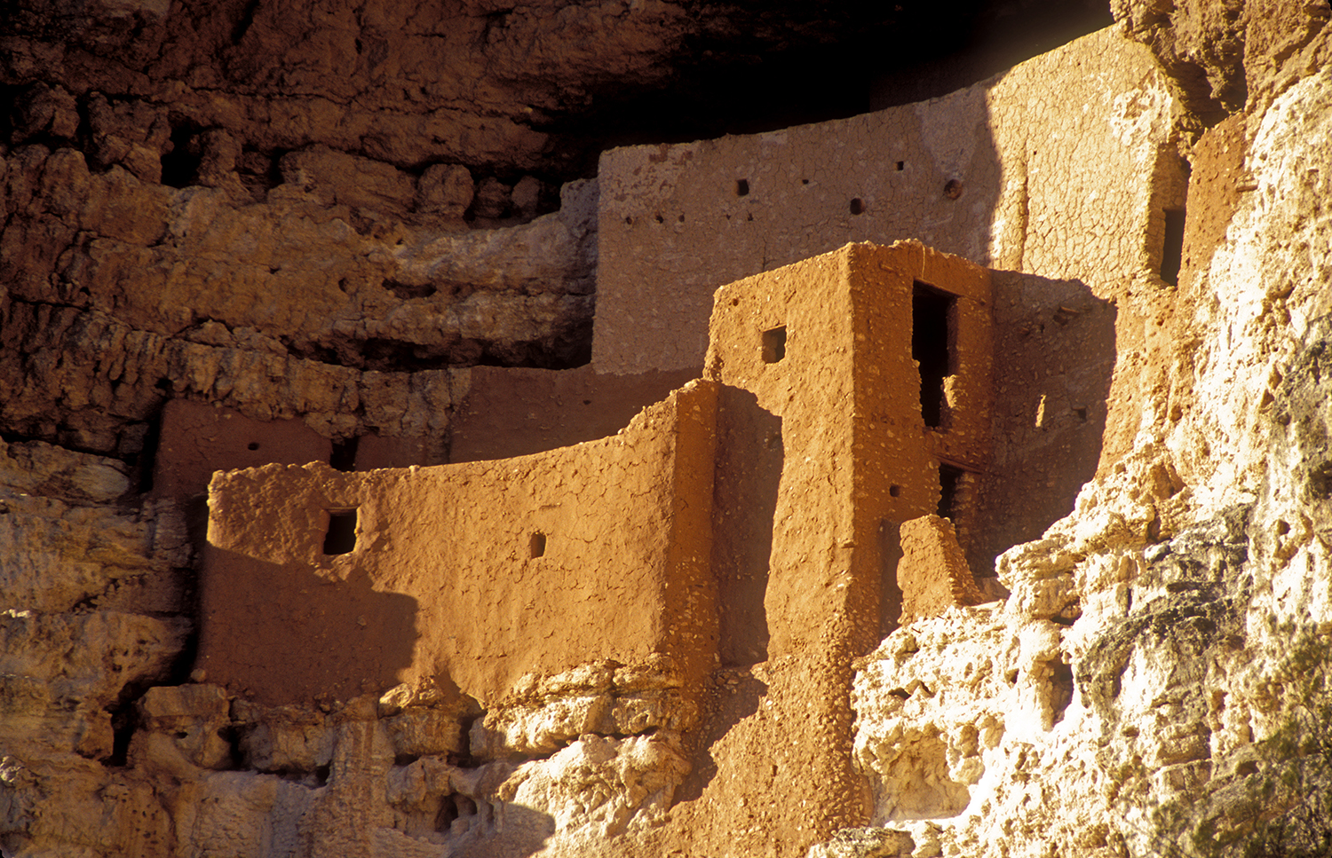 Long shadows fall on Montezuma Castle, an ancient cliff dwelling in Central Arizona.
