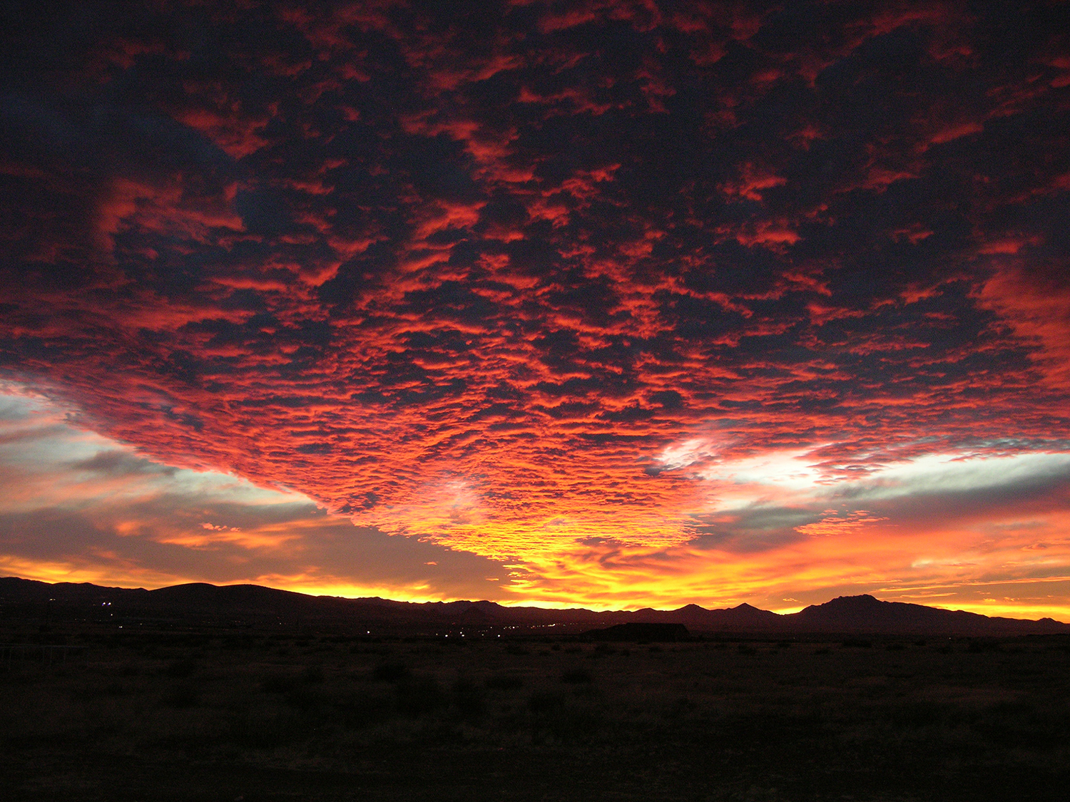 A glowing granite outcrop rises from a vast valley below the Pinaleño Mountains, near Safford.
