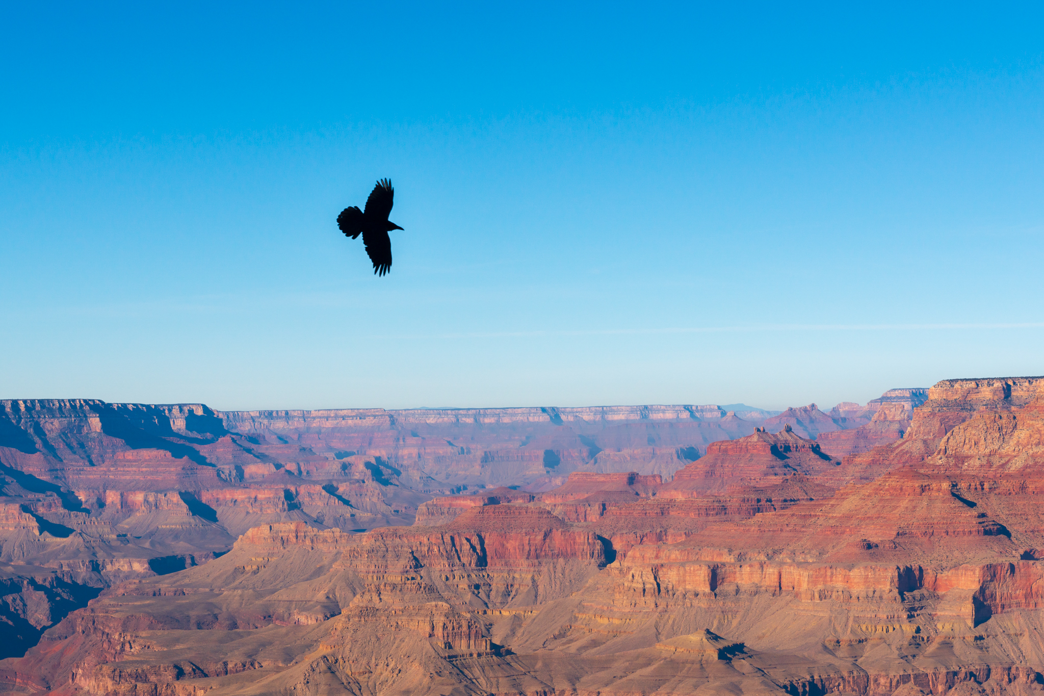 A common raven soars over the Grand Canyon.