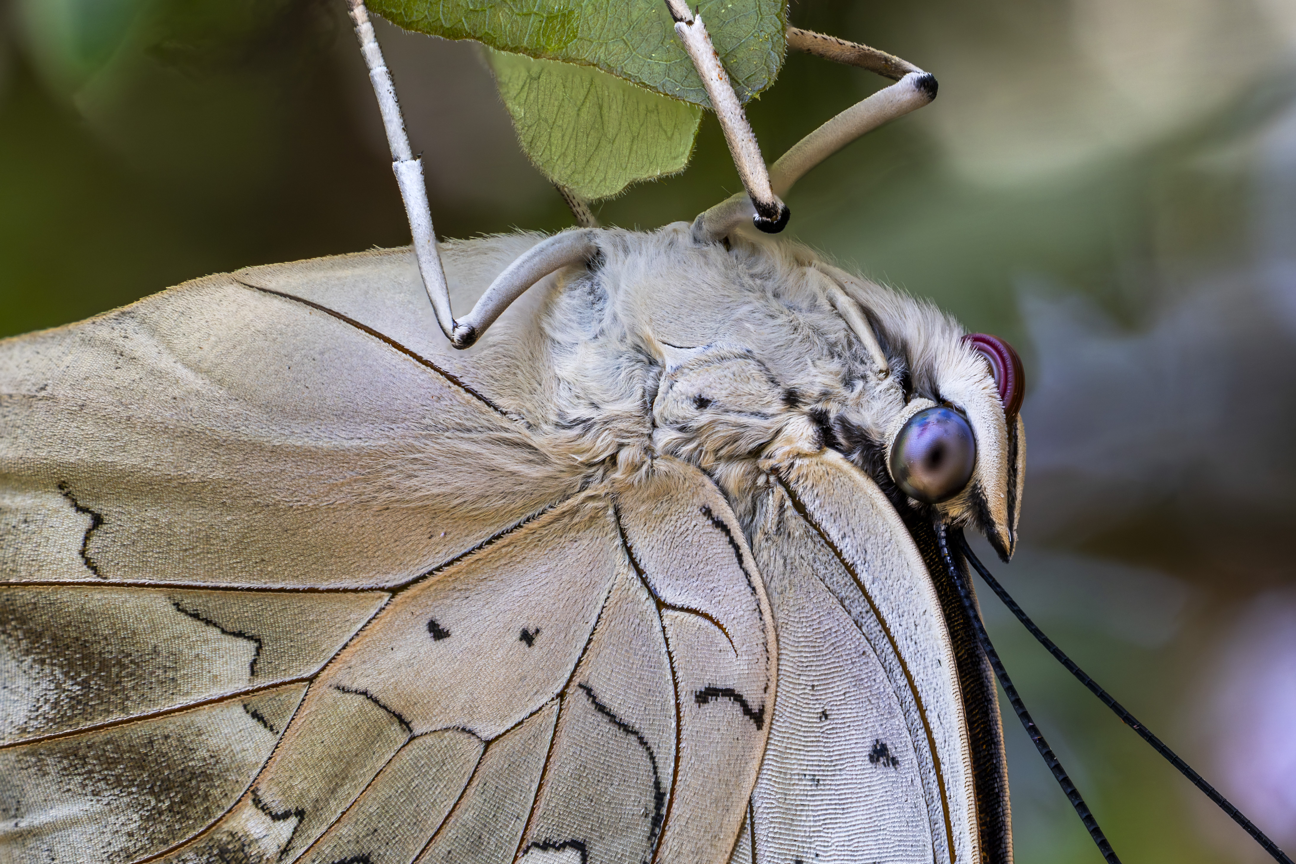 Close-up of a shoemaker butterfly showing off its texture and colored eye