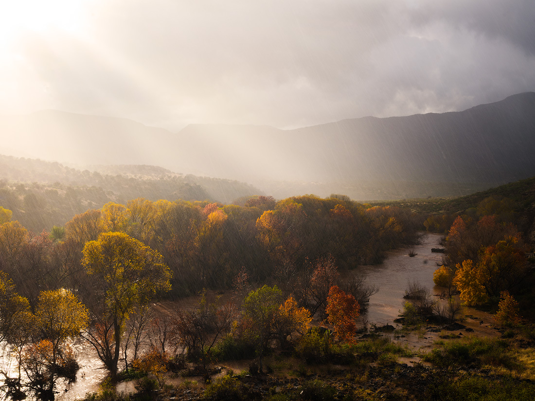 The Verde River at the base of the Cedar Bench Wilderness had reached flood stage. The thick clouds broke for a moment and the heavens shined down upon the Fall scene I had previously lined up.