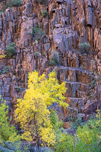 Aravaipa Canyon contrast with the yellow tree and the towering cliffs.
