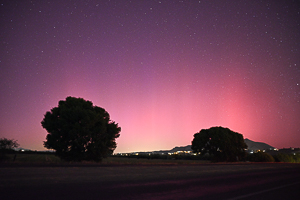 The aurora over the my two favorite trees that line an area in Rio Rico, just eleven miles north of the Mexico border.