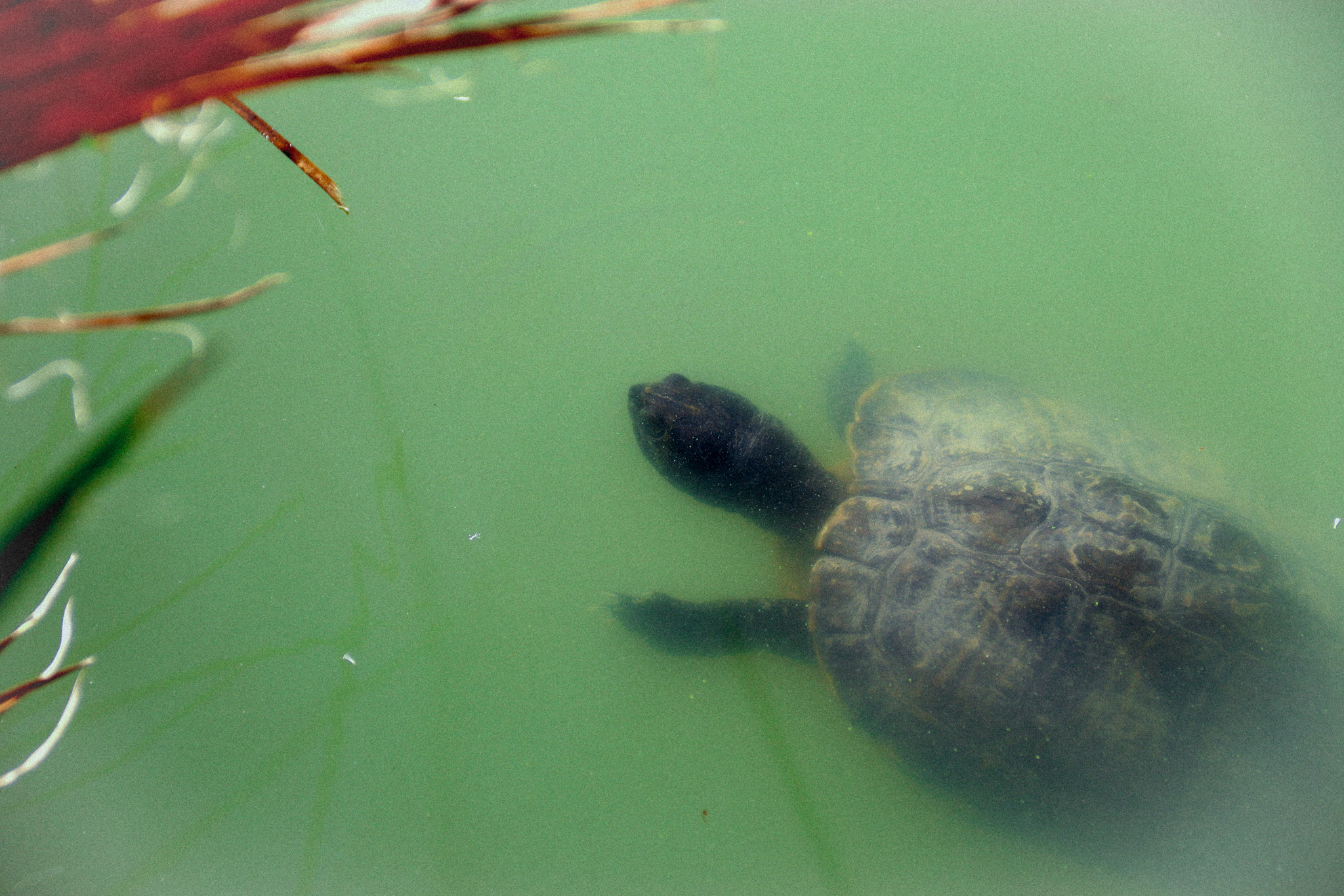 I took this a while back while on a field trip. I just sat by the edge of the water and started calling over the fish and turtles as if they where dogs as a joke, but they ended up actually coming right up to me. I could pet the turtles and pick up the schools of fish with my bare hands. This particular turtle would constantly come up to me and even showed me their kid, although it got scared and ran off.