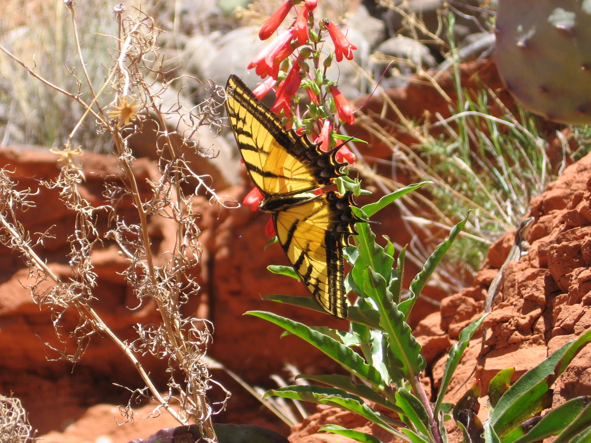 Tiger Swallowtail butterfly and a gecko hiding in the background