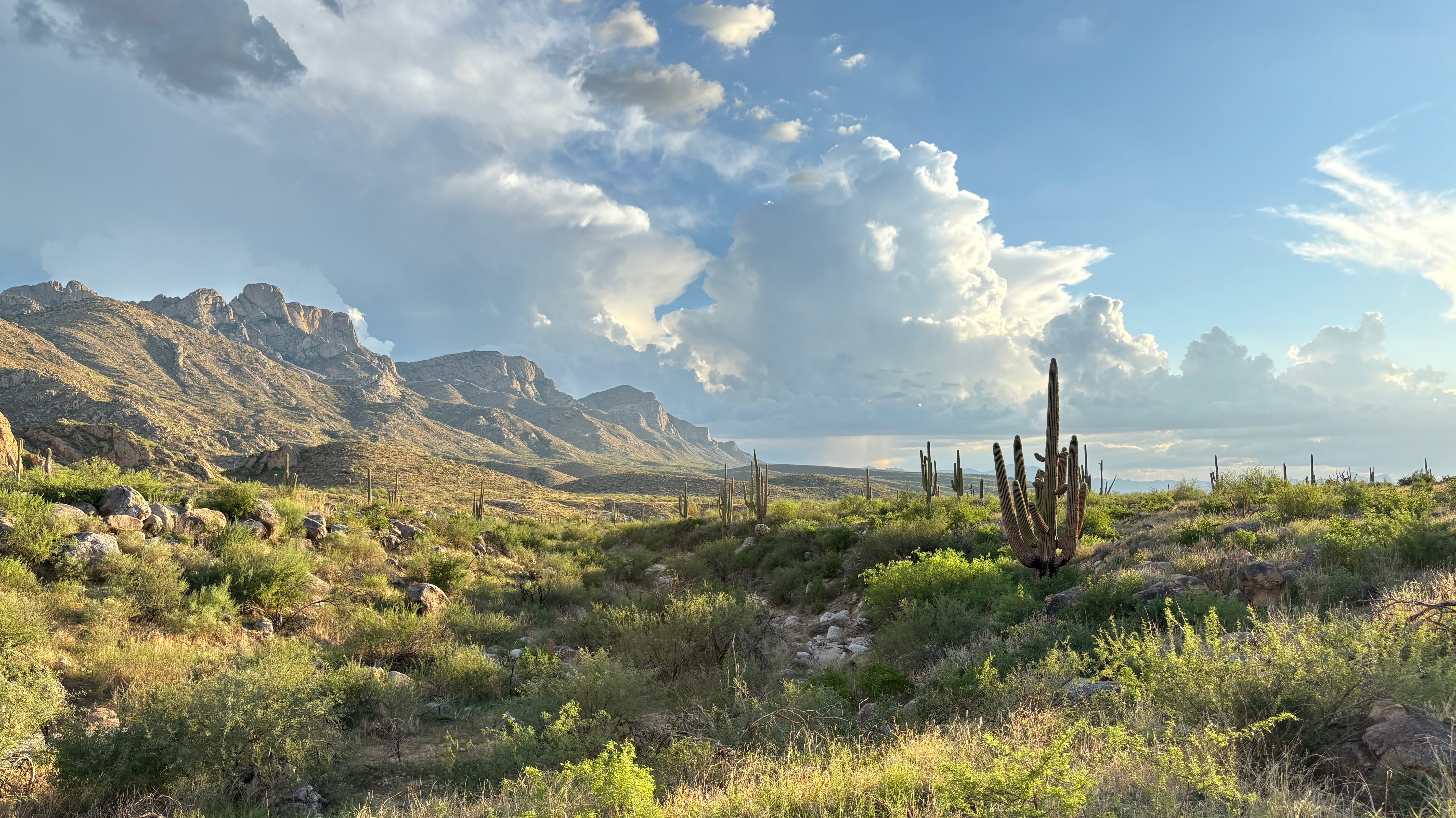 Verdant landscape on a mild afternoon in Catalina State Park as a monsoon storm begins to form.