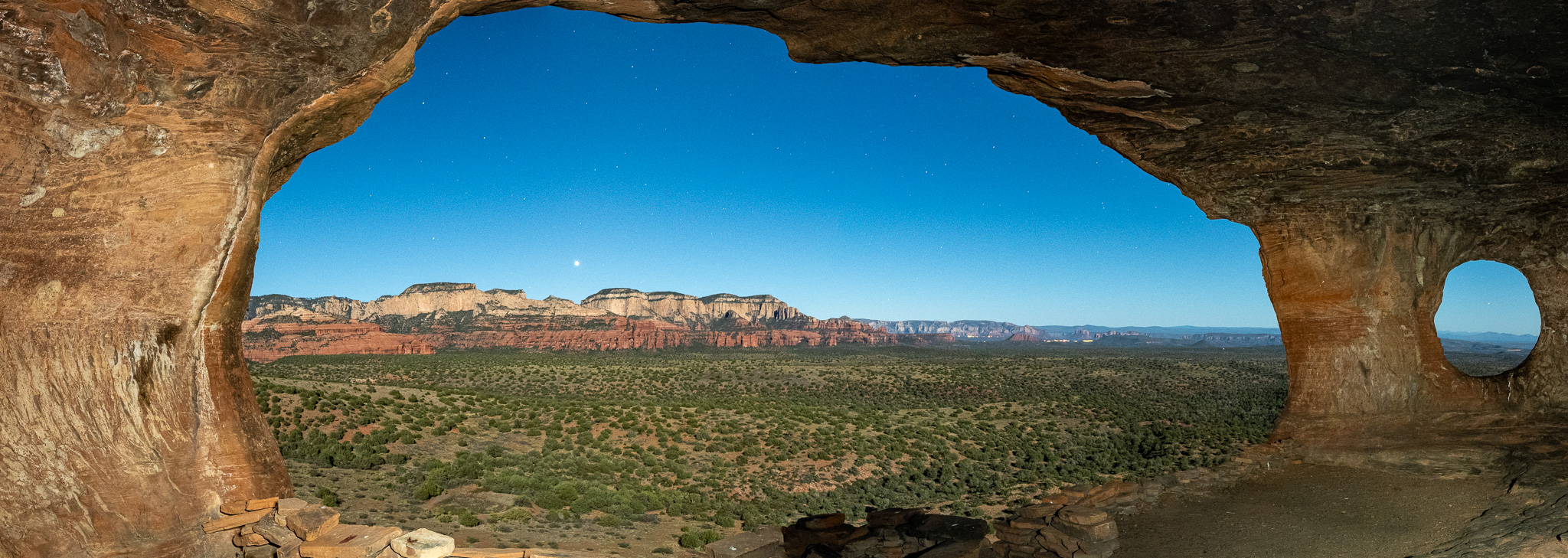 Venus rises above Bear Mountain in Sedona in a long exposure from inside Robber's Roost.
