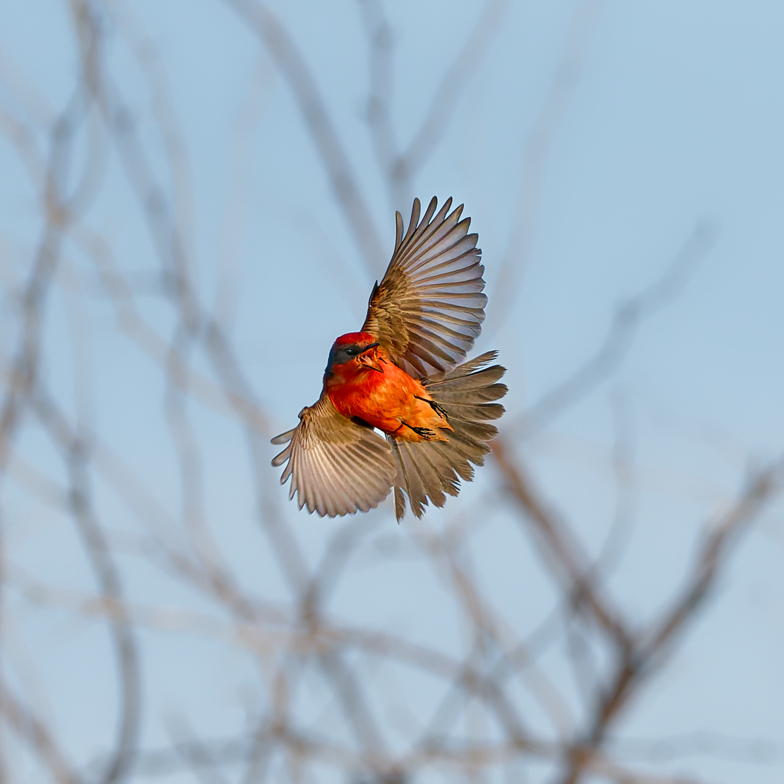 In-flight meal for a Vermillion Flycatcher.