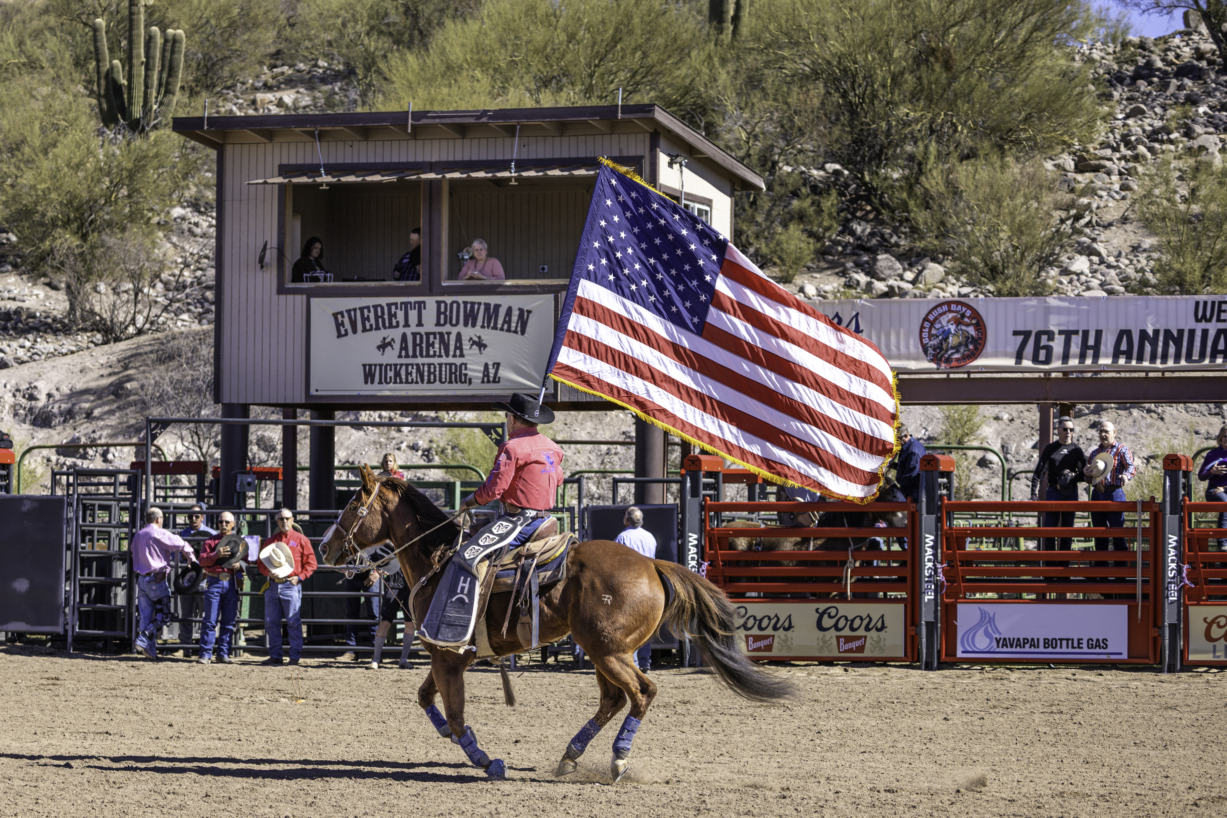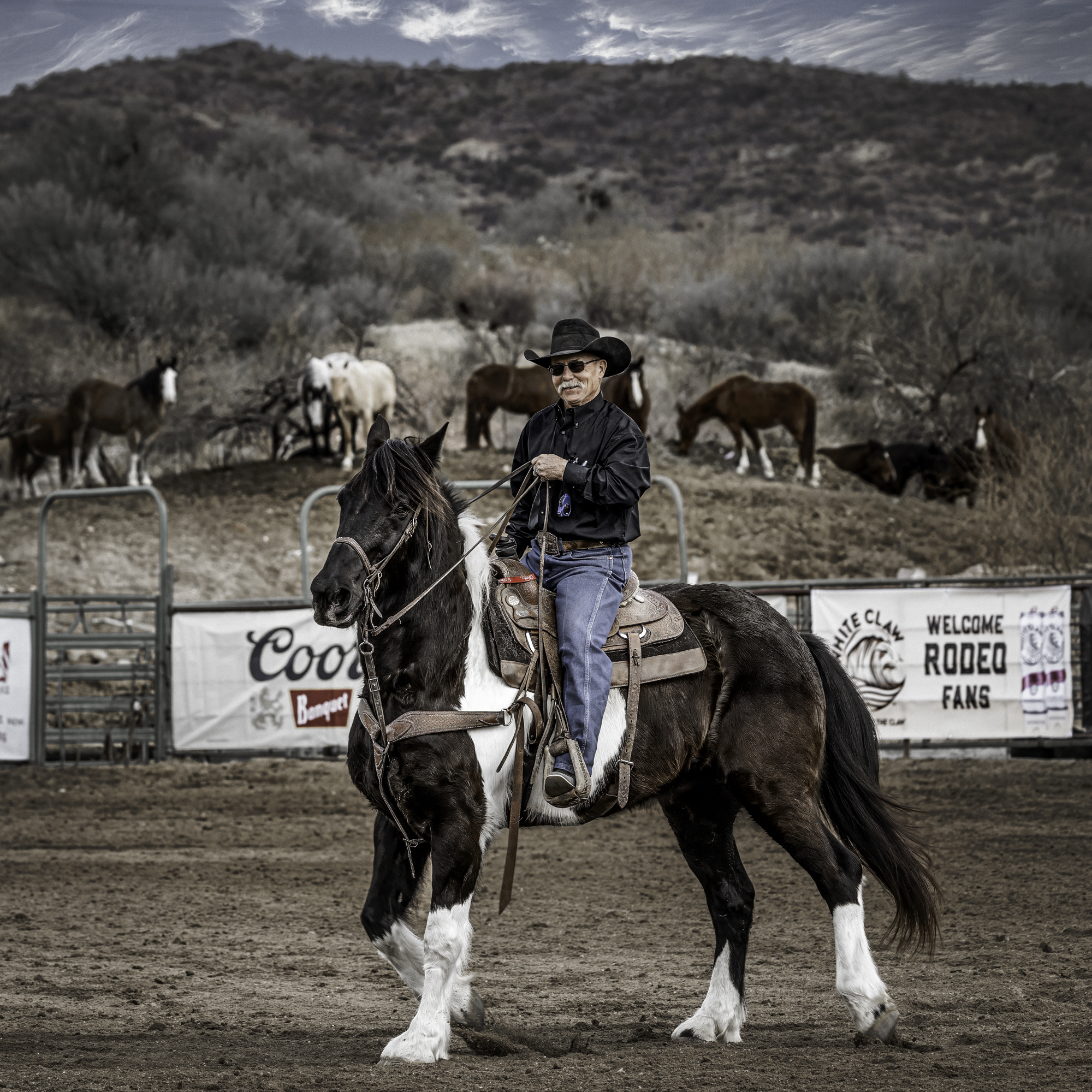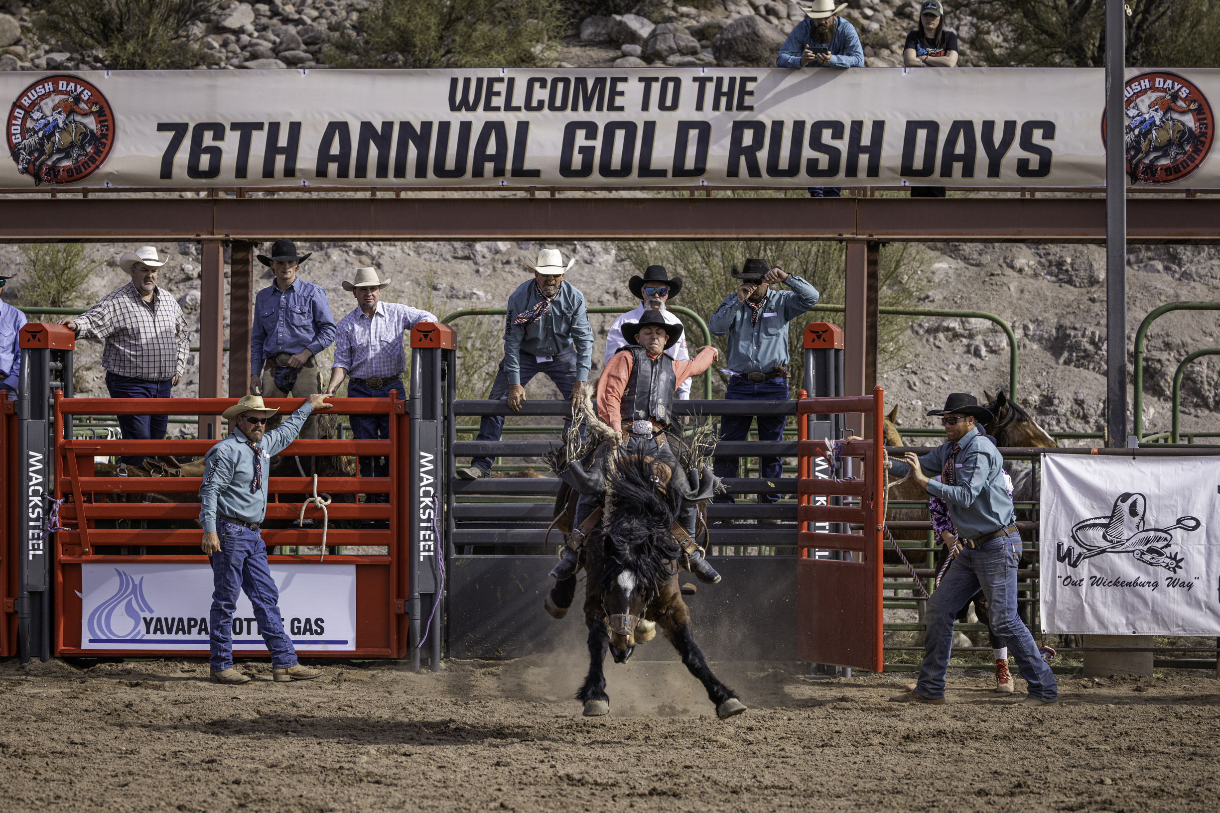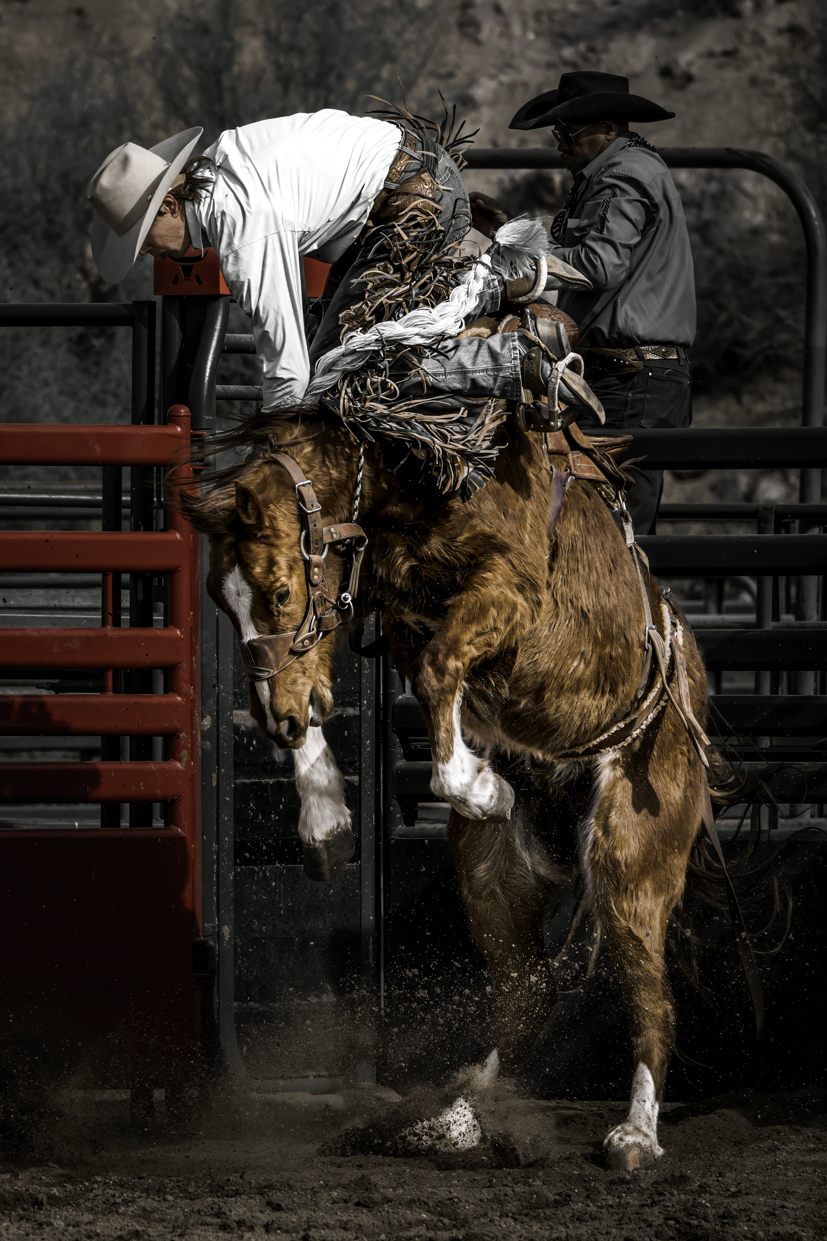 Saddle bronc rider at Wickenburg Senior Pro Rodeo