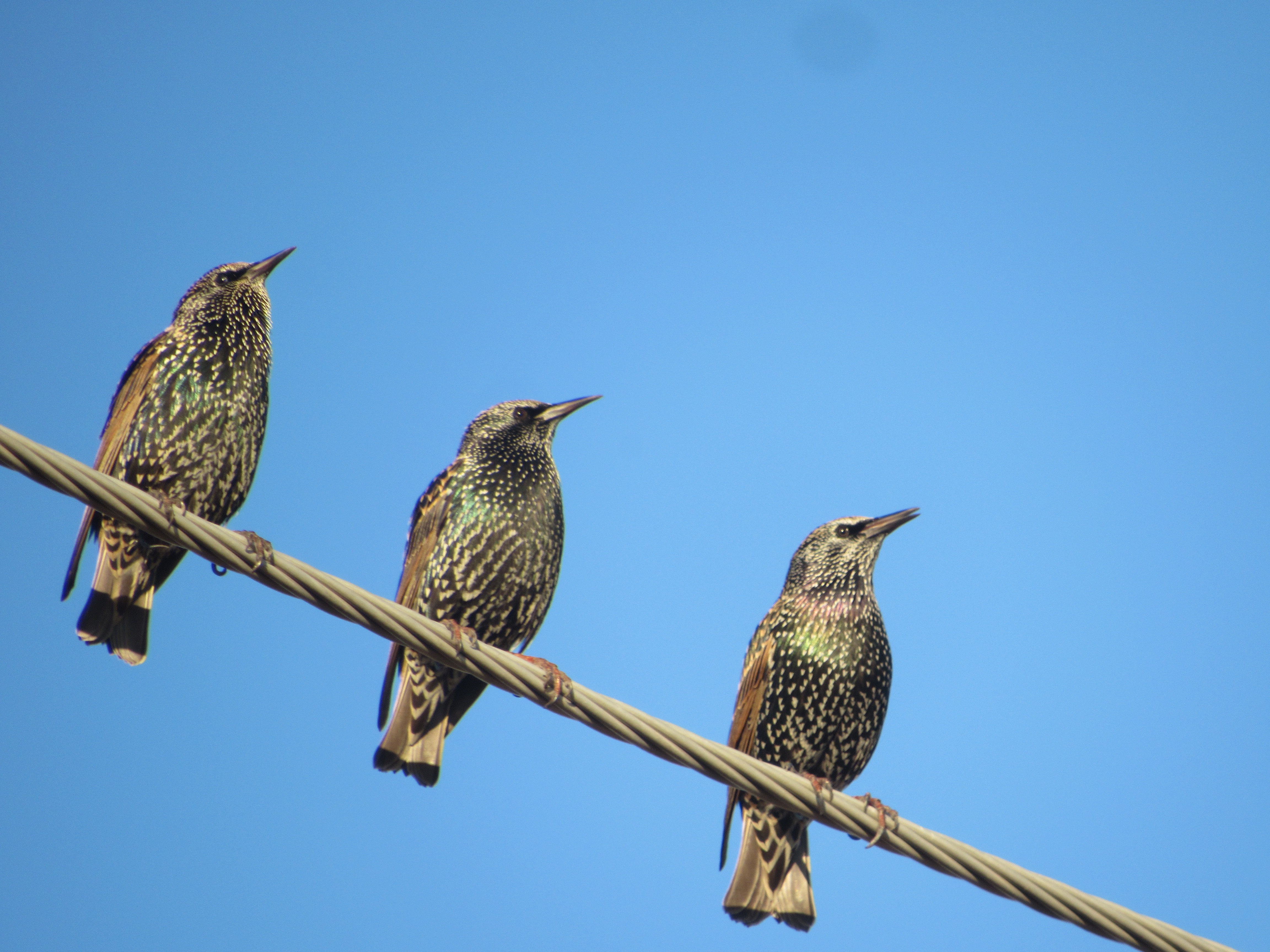 A trio of European Starlings hang out near our apartments.