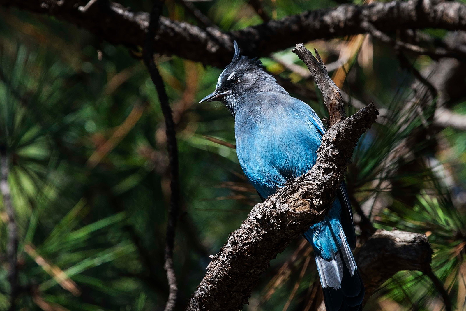 Stellar Jay shot while camping in the White Mountains in early fall. Each morning a group of Jays would come to the campsite and hang out for about 30 minutes.