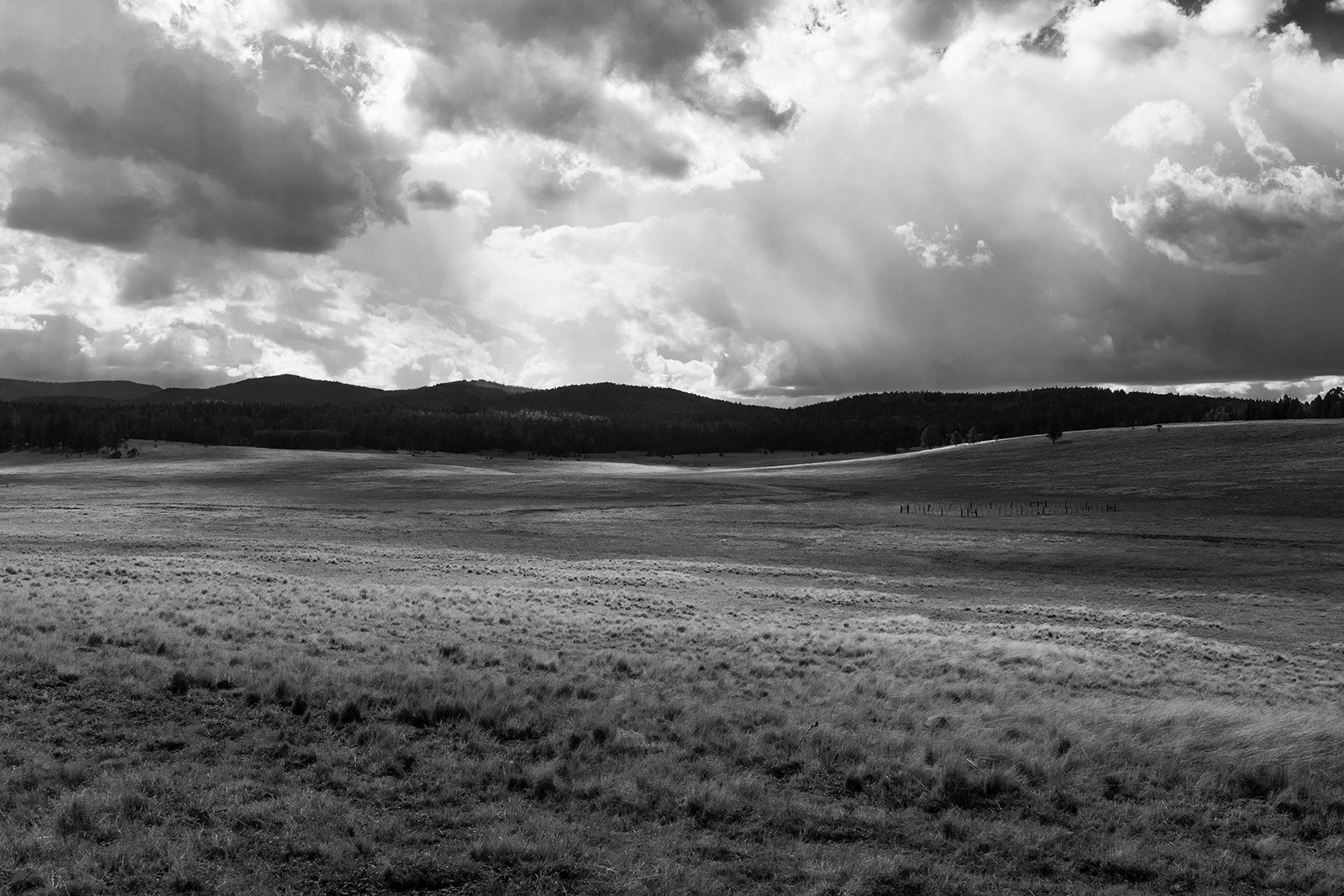 This was taken in an open meadow on a forest road in the White Mountains. The clouds built up as the day progressed. The starkness of the land was a beautiful contrast to the billowing sky.