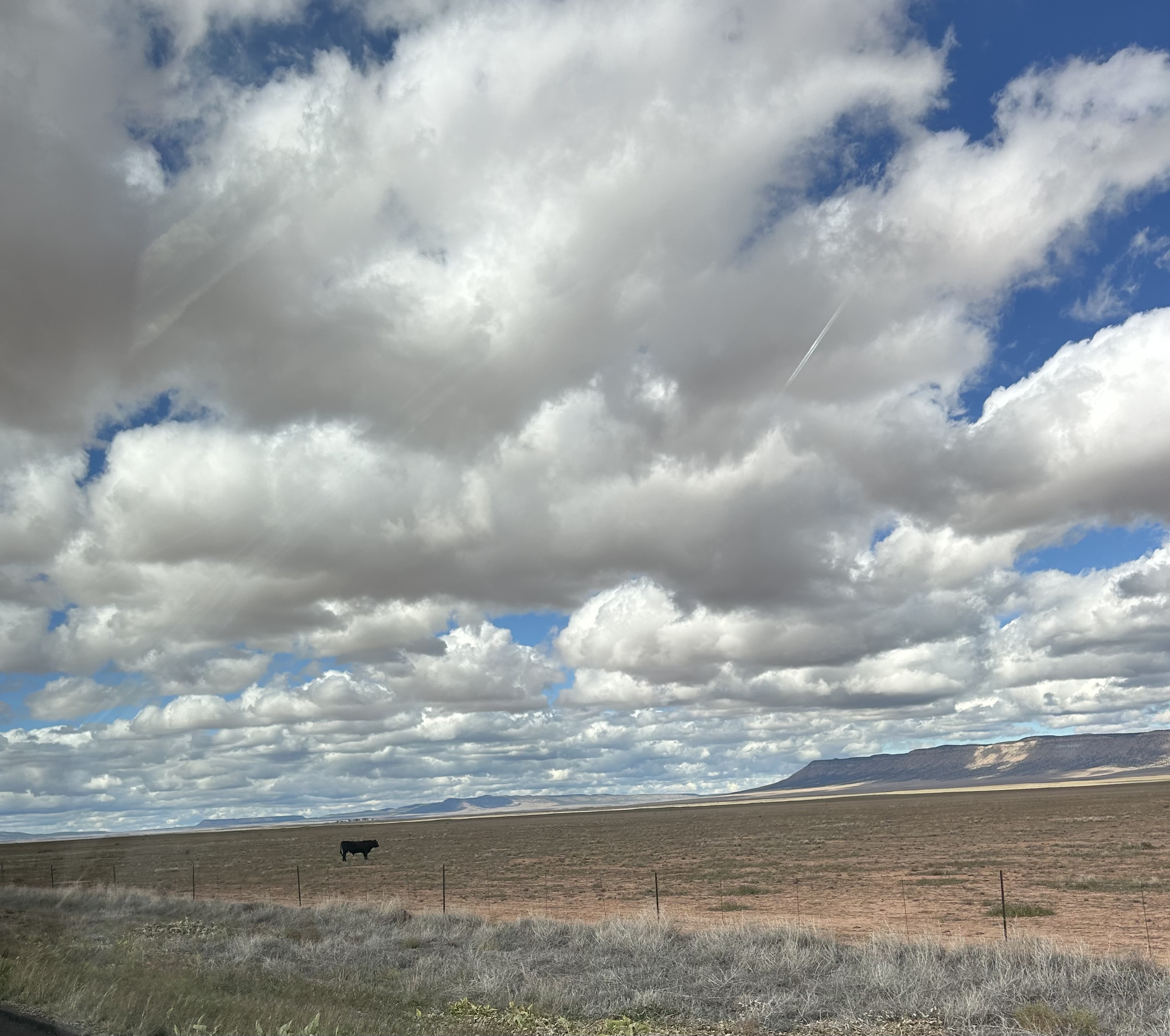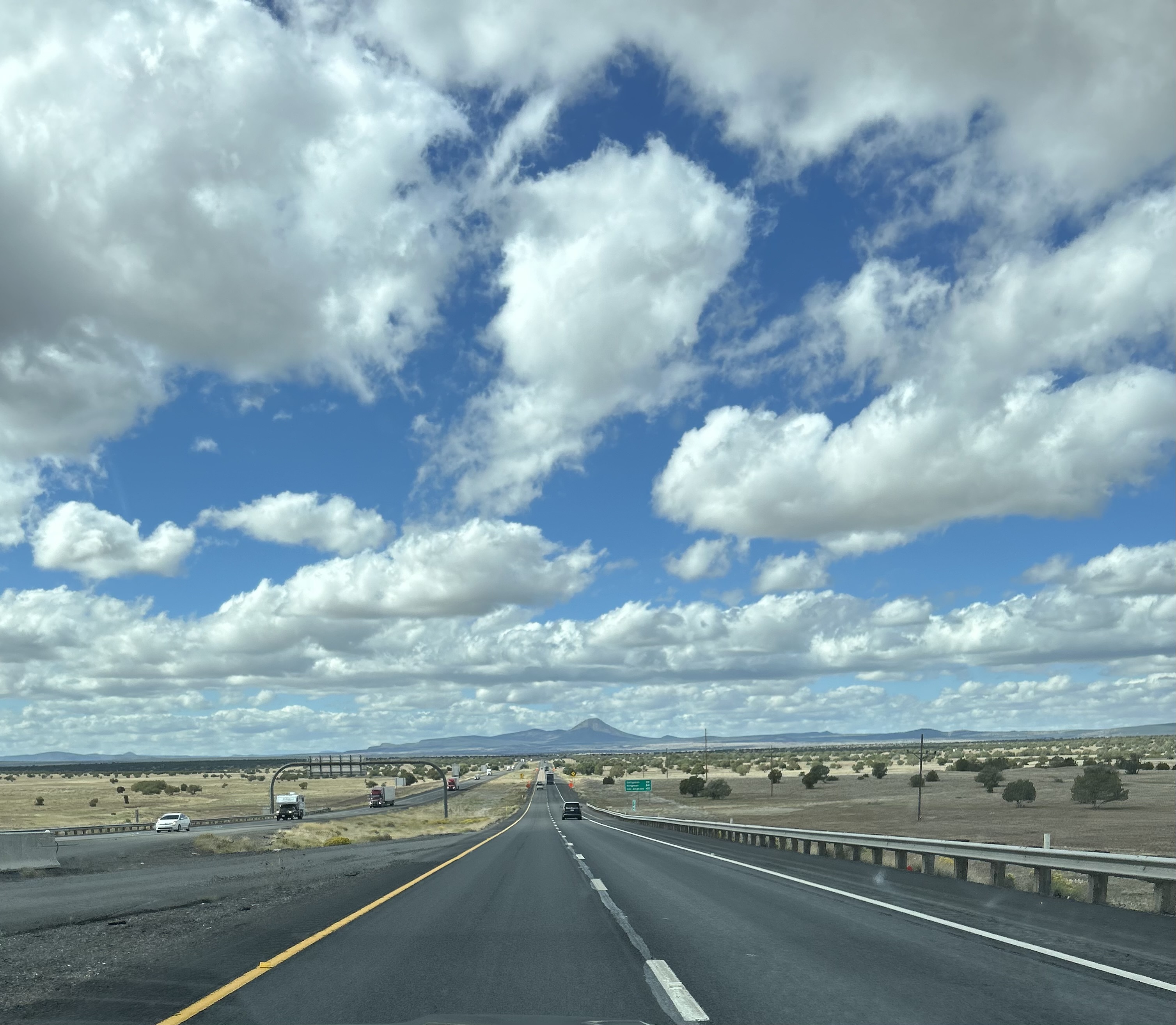 Driving West I40, 22 miles from Seligman Route 66. Big wide land and big wide sky.