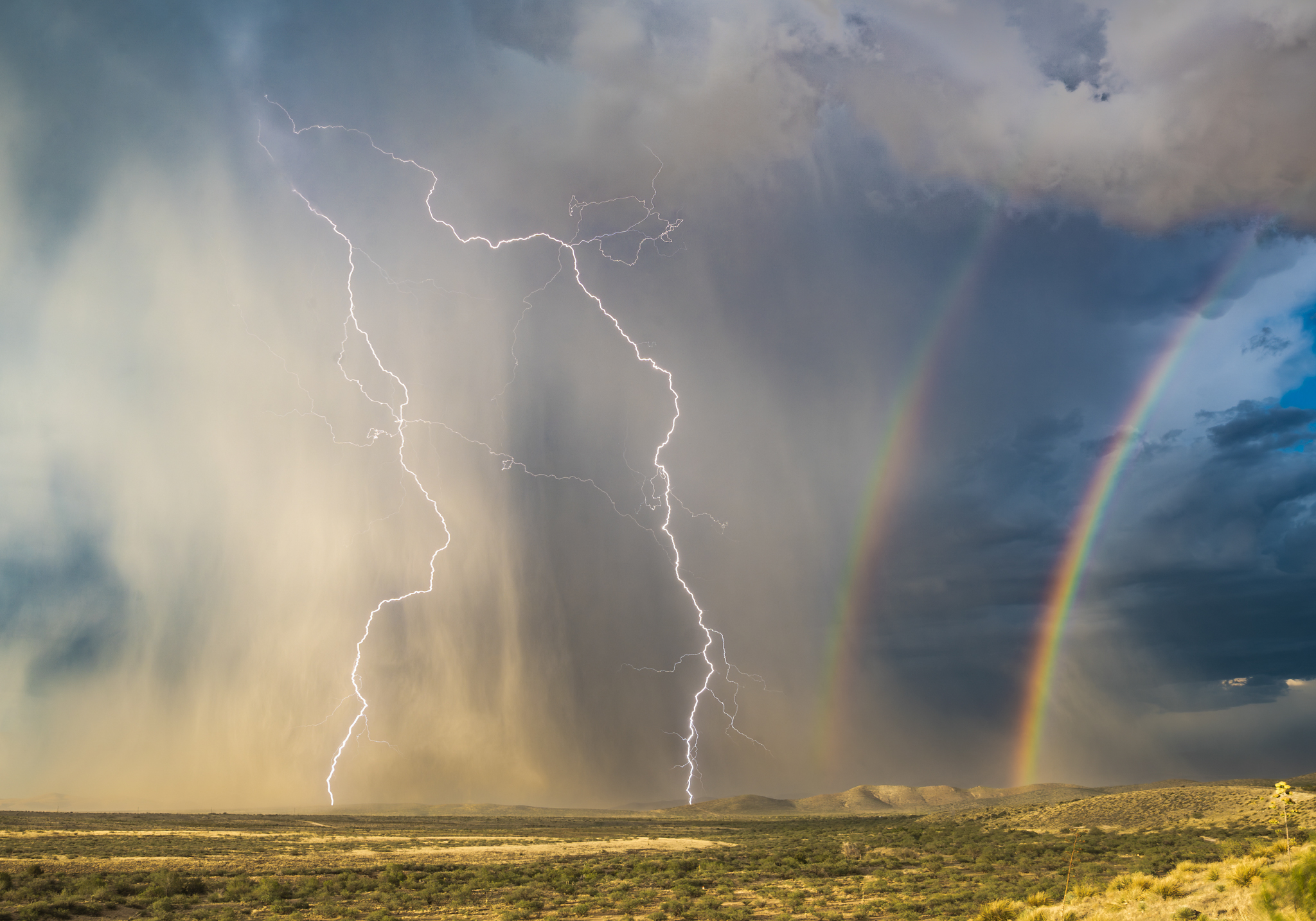Double Rainbow and Double lightning in a single image! Captured out near Benson this summer!