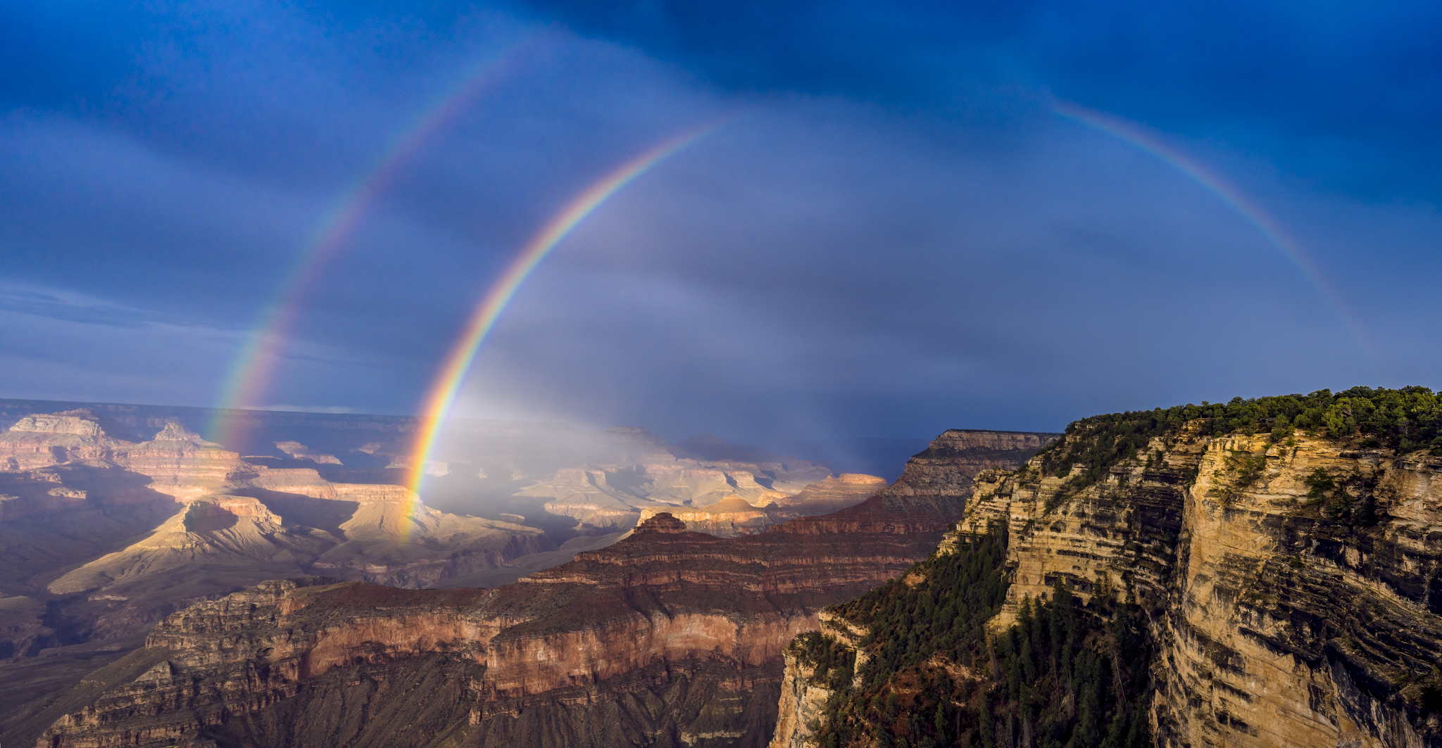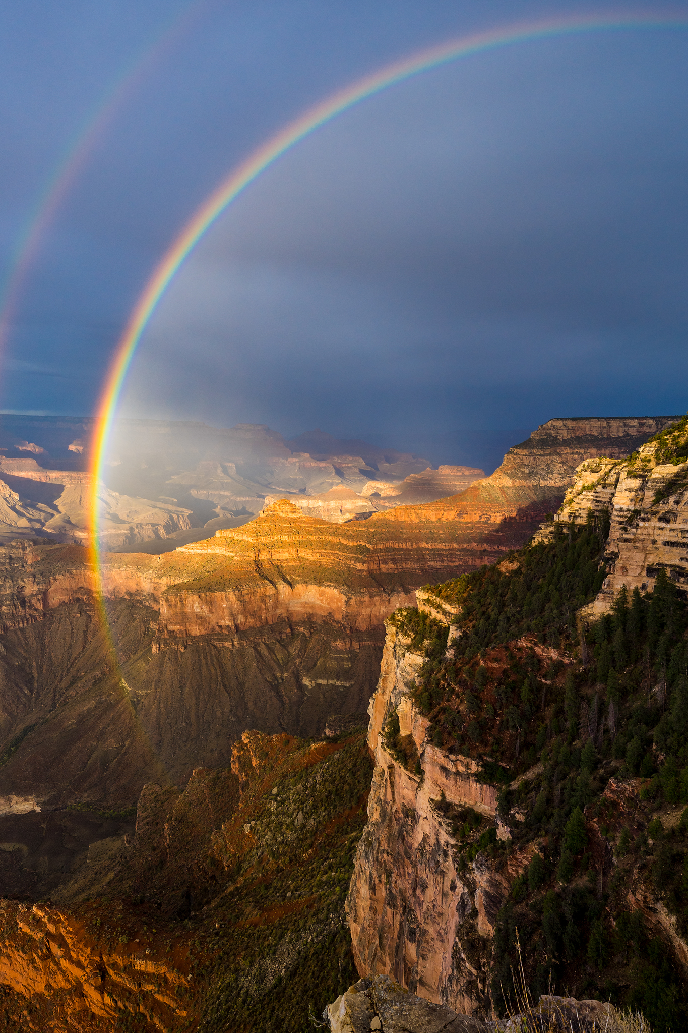 A double rainbow stretching across the Grand Canyon. Moments like this remind me why I chase light and weather!