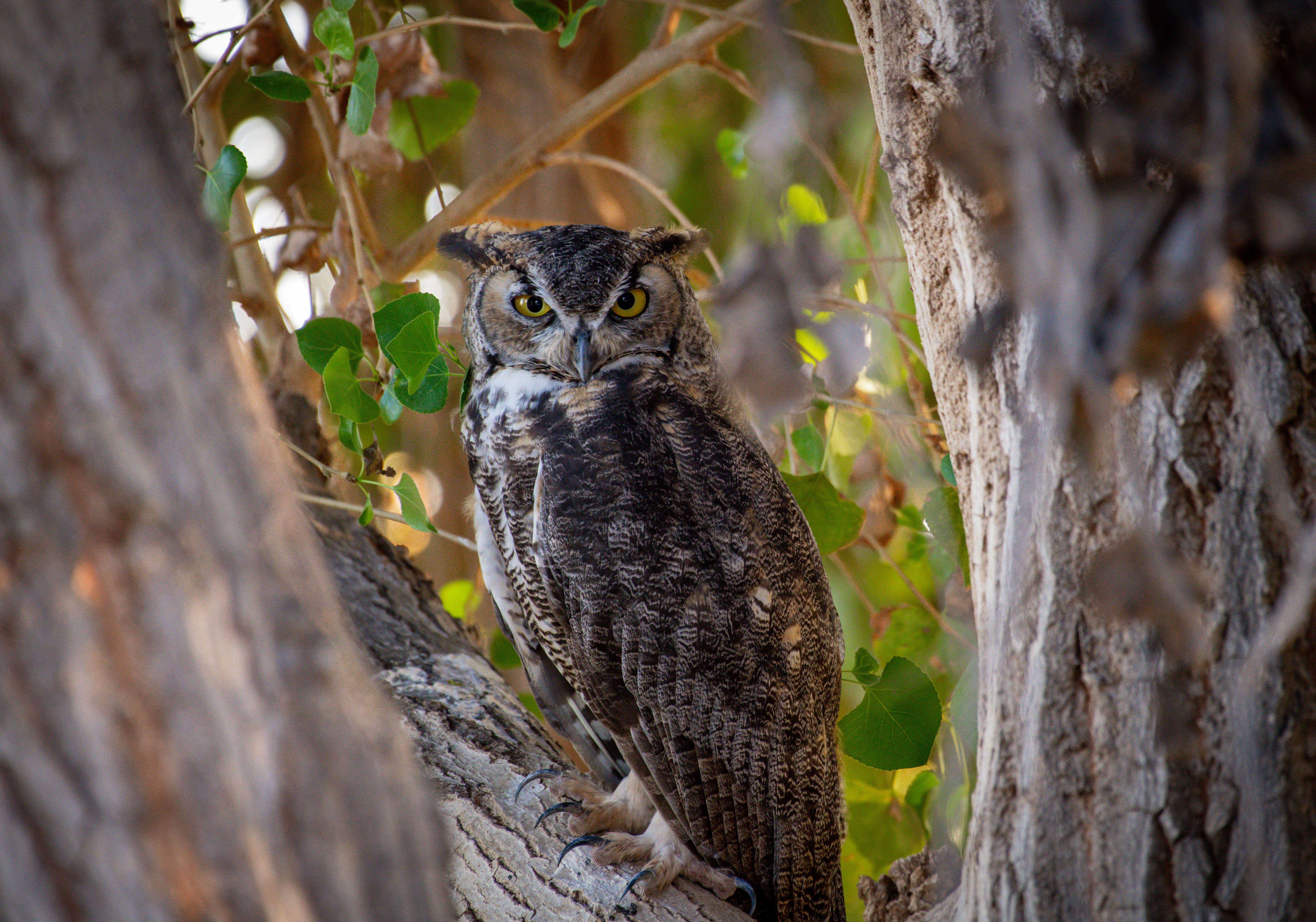 Great Horned Owl keep watch in Gilbert, Arizona.
