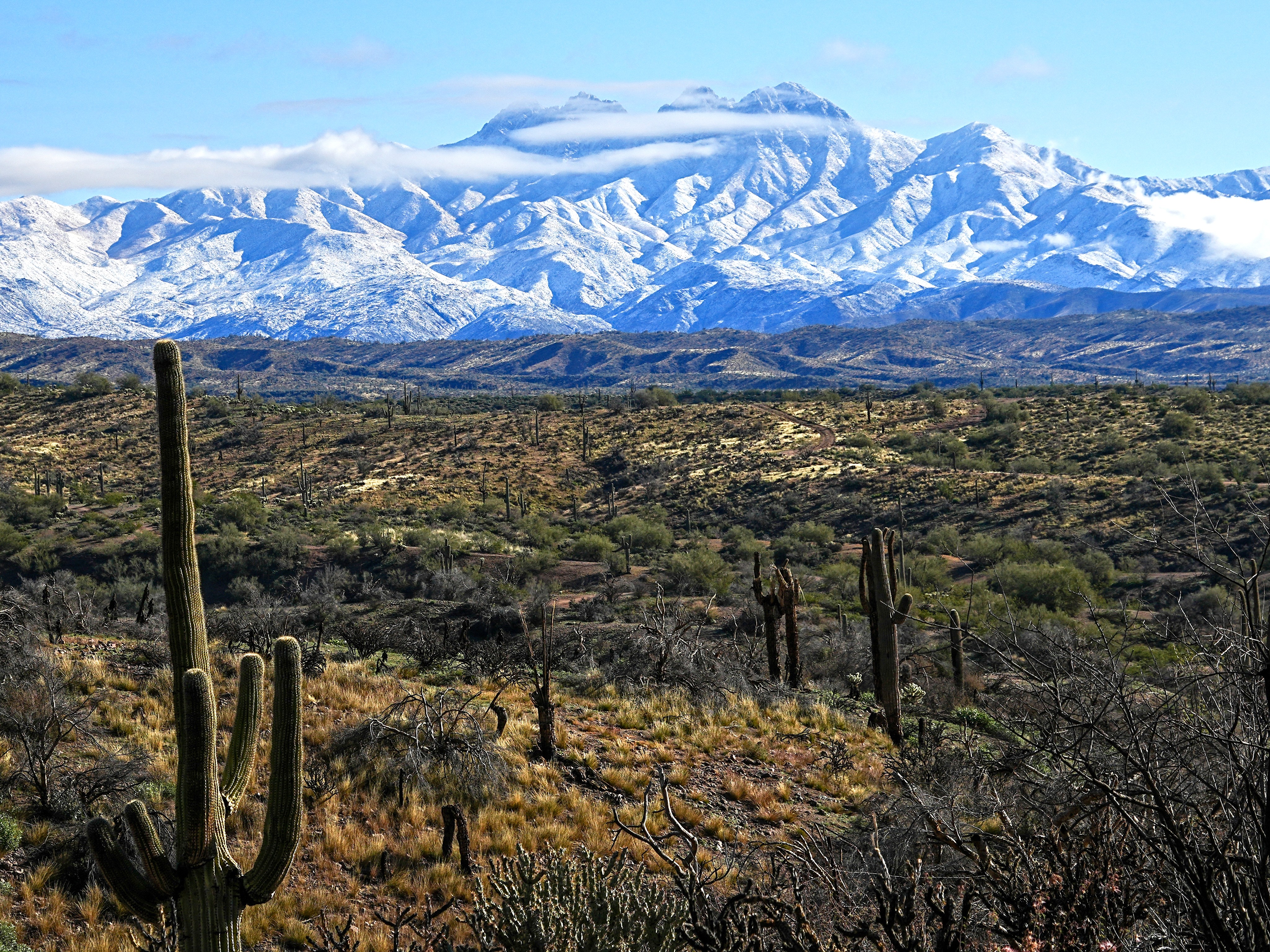 A fast moving winter storm coats Four Peaks in a beautiful coat of snow