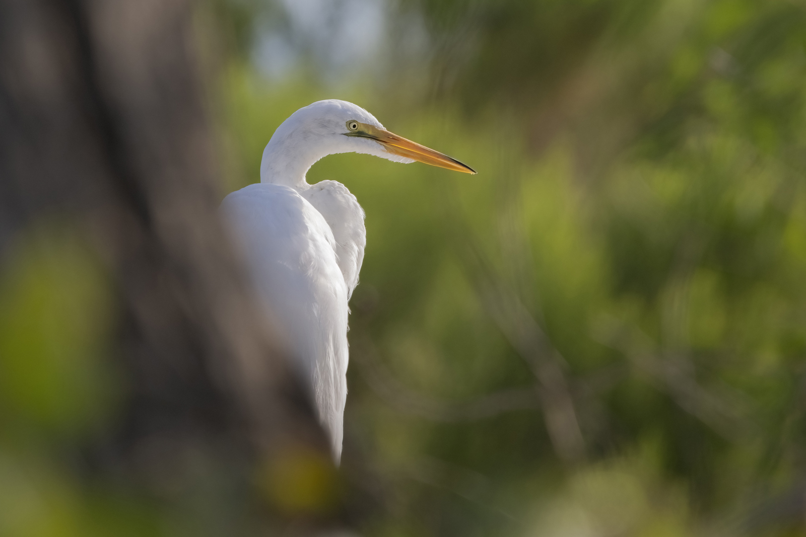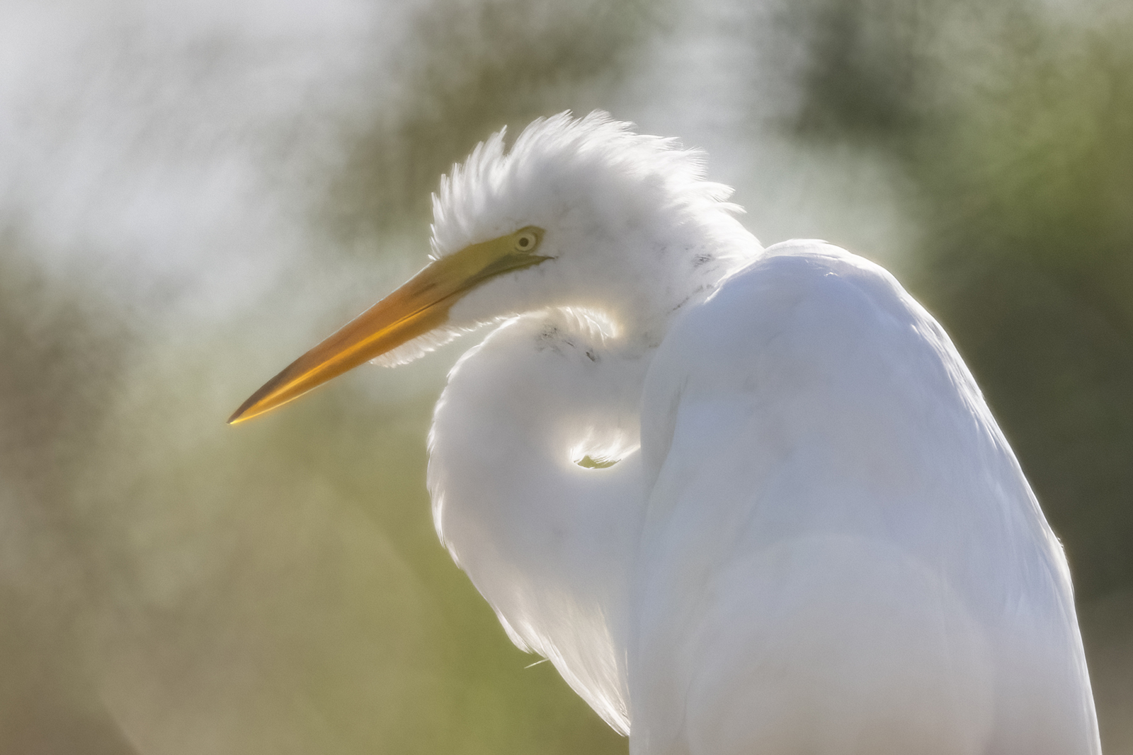 Great Egret, backlit.