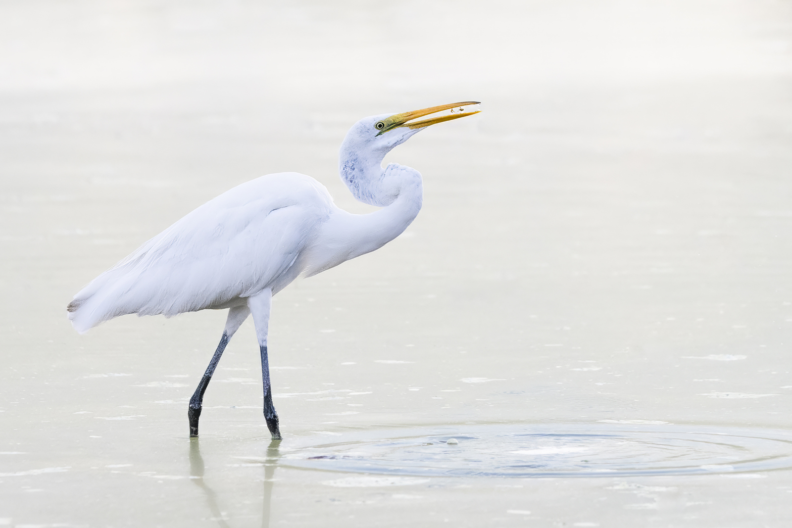 A Great Egret catches a Minnow.