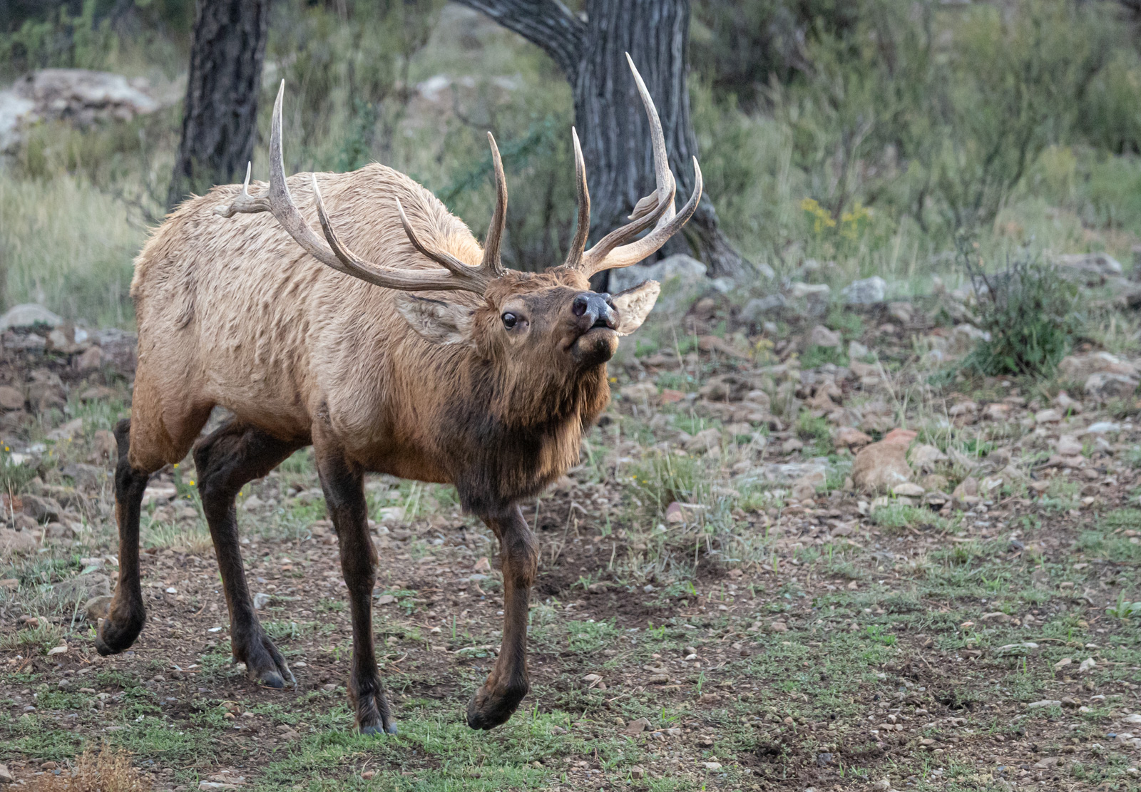 Bull elk pursues cow