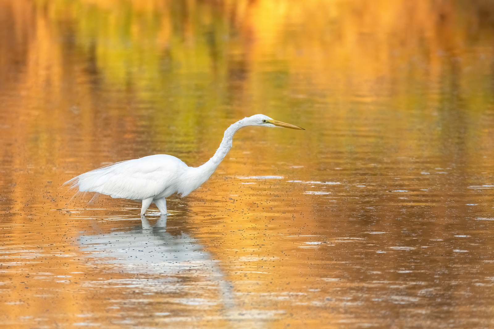 A Great Egret with beautiful morning light on the pond.