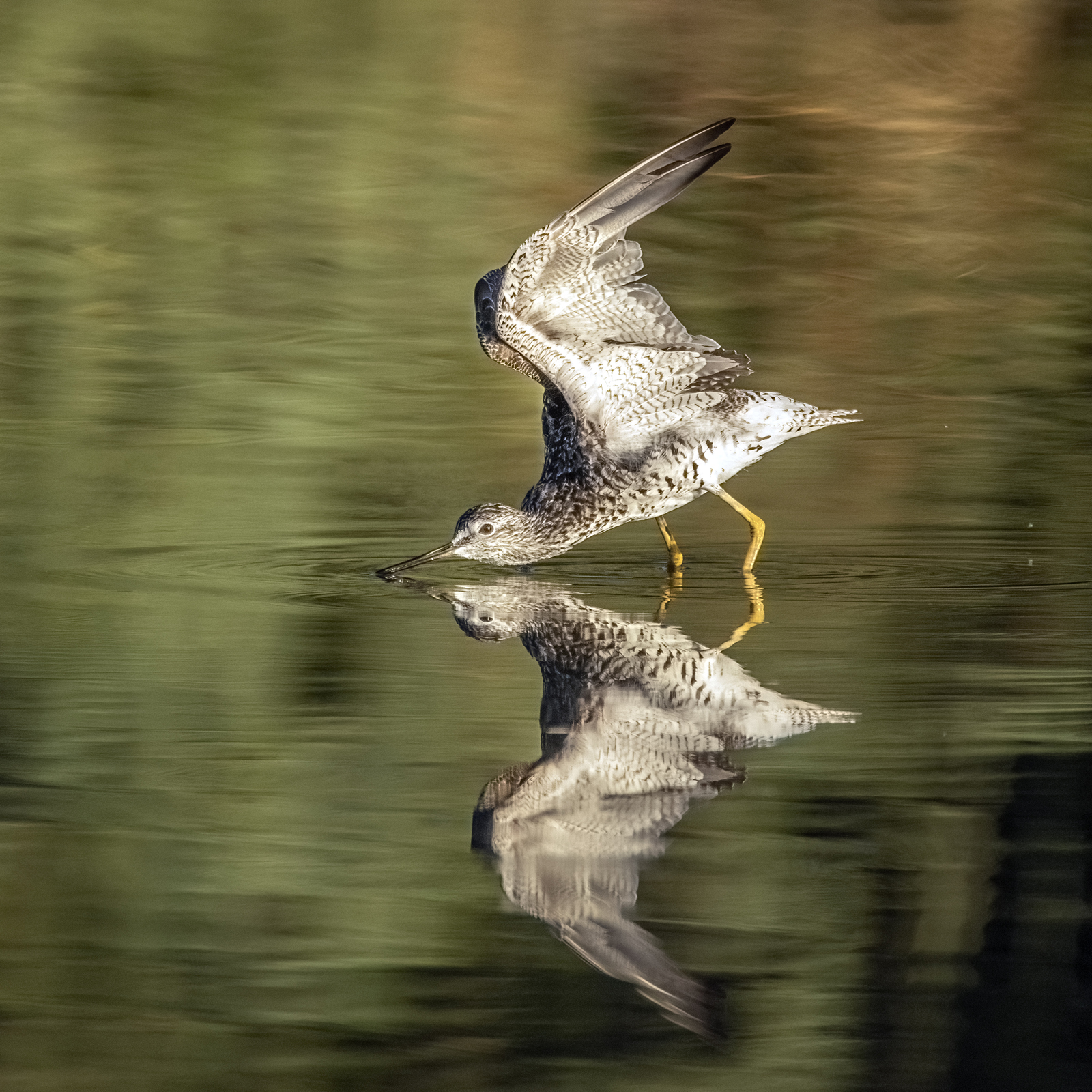 A Greater Yellowlegs is having a good stretch after preening its feathers.