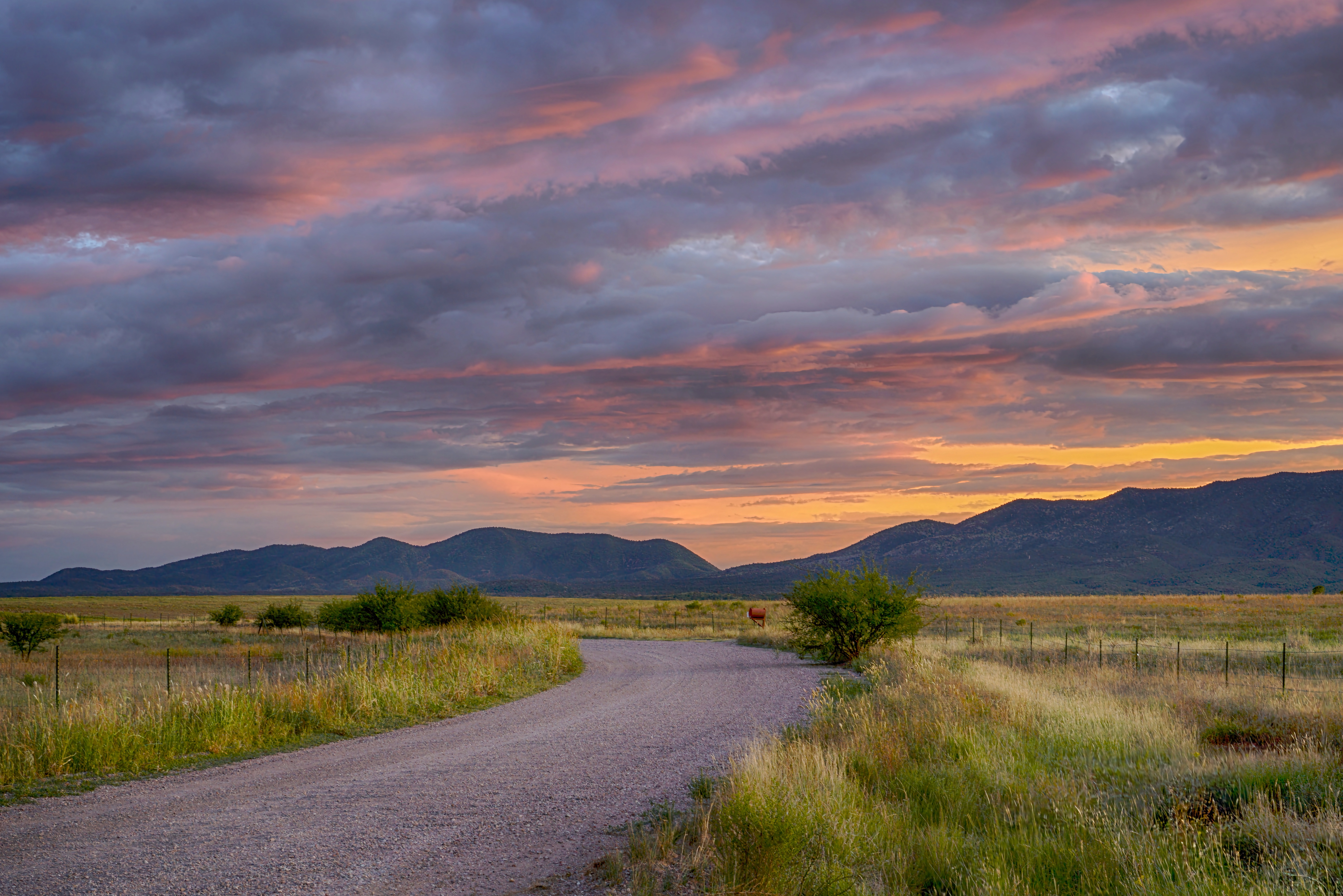 Sunset on the road to Lochiel in the San Rafael Valley, close to the Mexican Border.