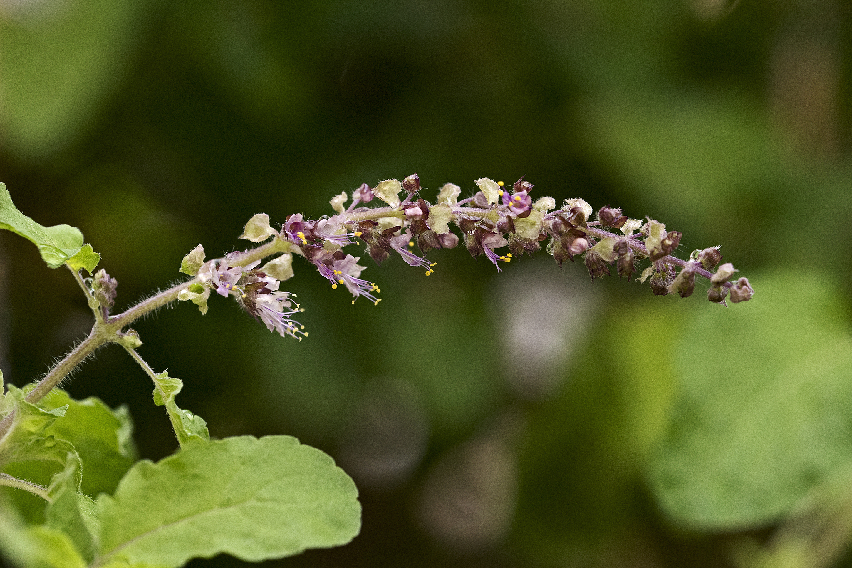 Beautiful tiny multicolor flowers on an Indian Basil plant grown in Phoenix Arizona.
