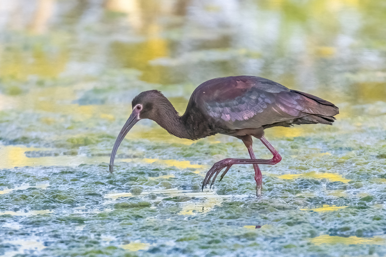 A White-faced Ibis enjoys a nutrient-rich environment during its brief visit to Gilbert Riparian Preserve.