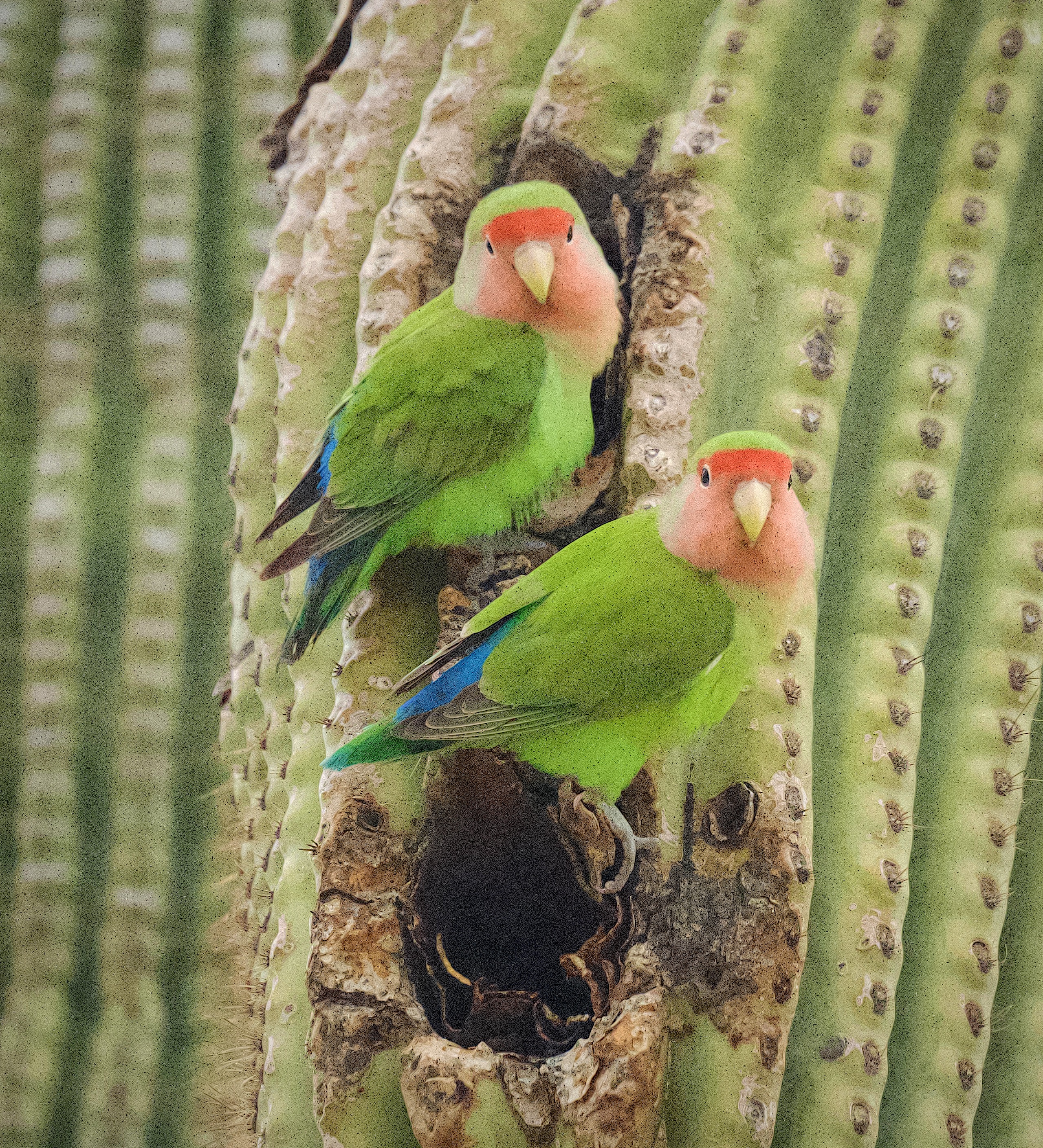 A Pair of Peach Faced Lovebirds "Here's Looking at You"