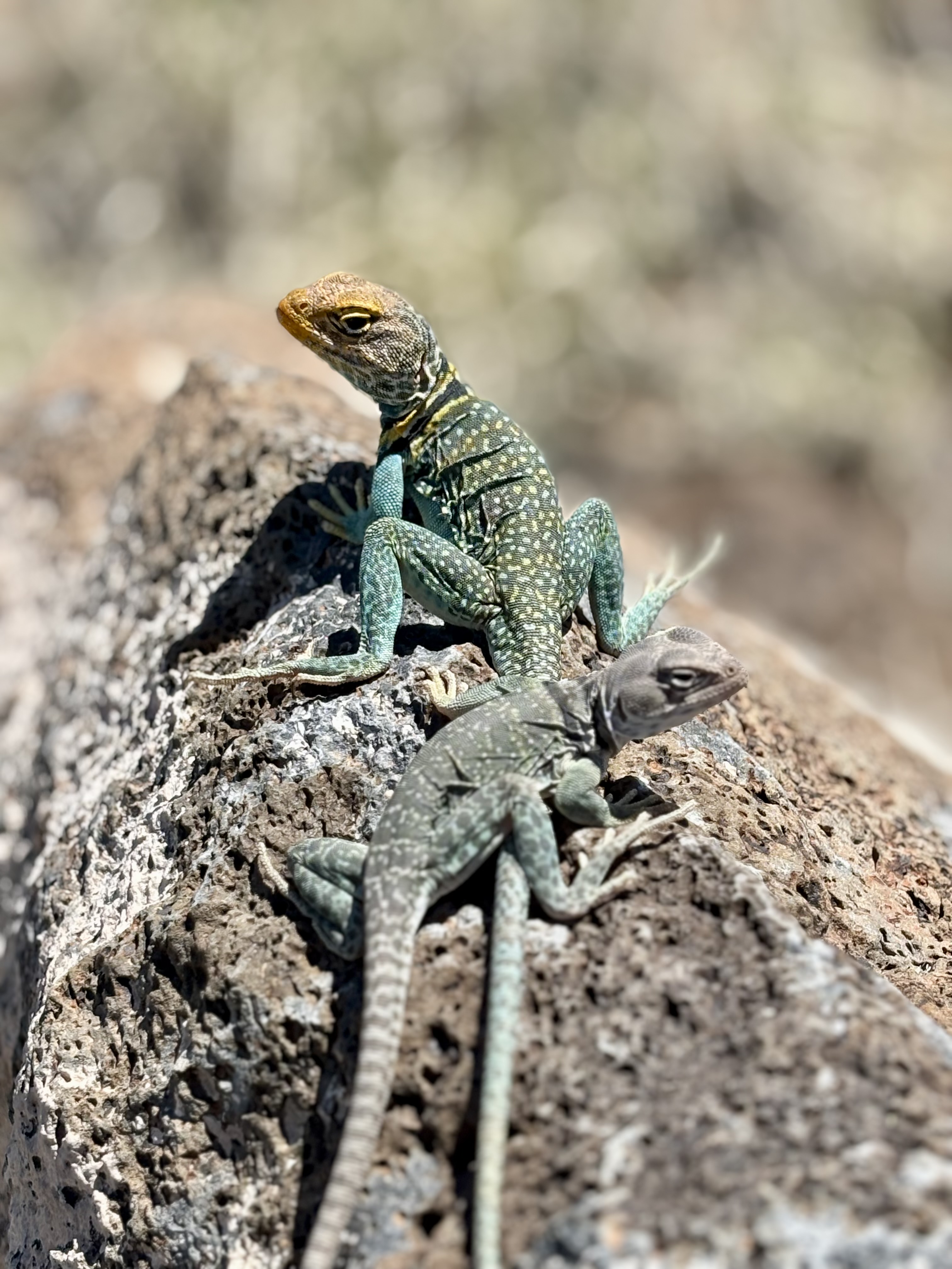Beautiful collard lizards. Sunning on a on a rock in the early morning! A wonderful picture for everyone to enjoy 😉!