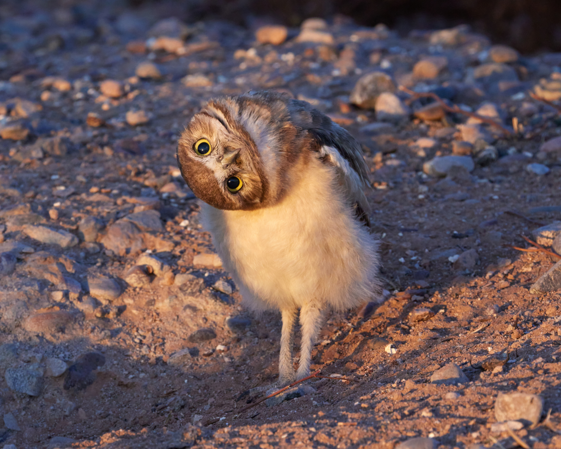 Burrowing Owl owlet exhibiting motion parallax to determine what's going on in his environment