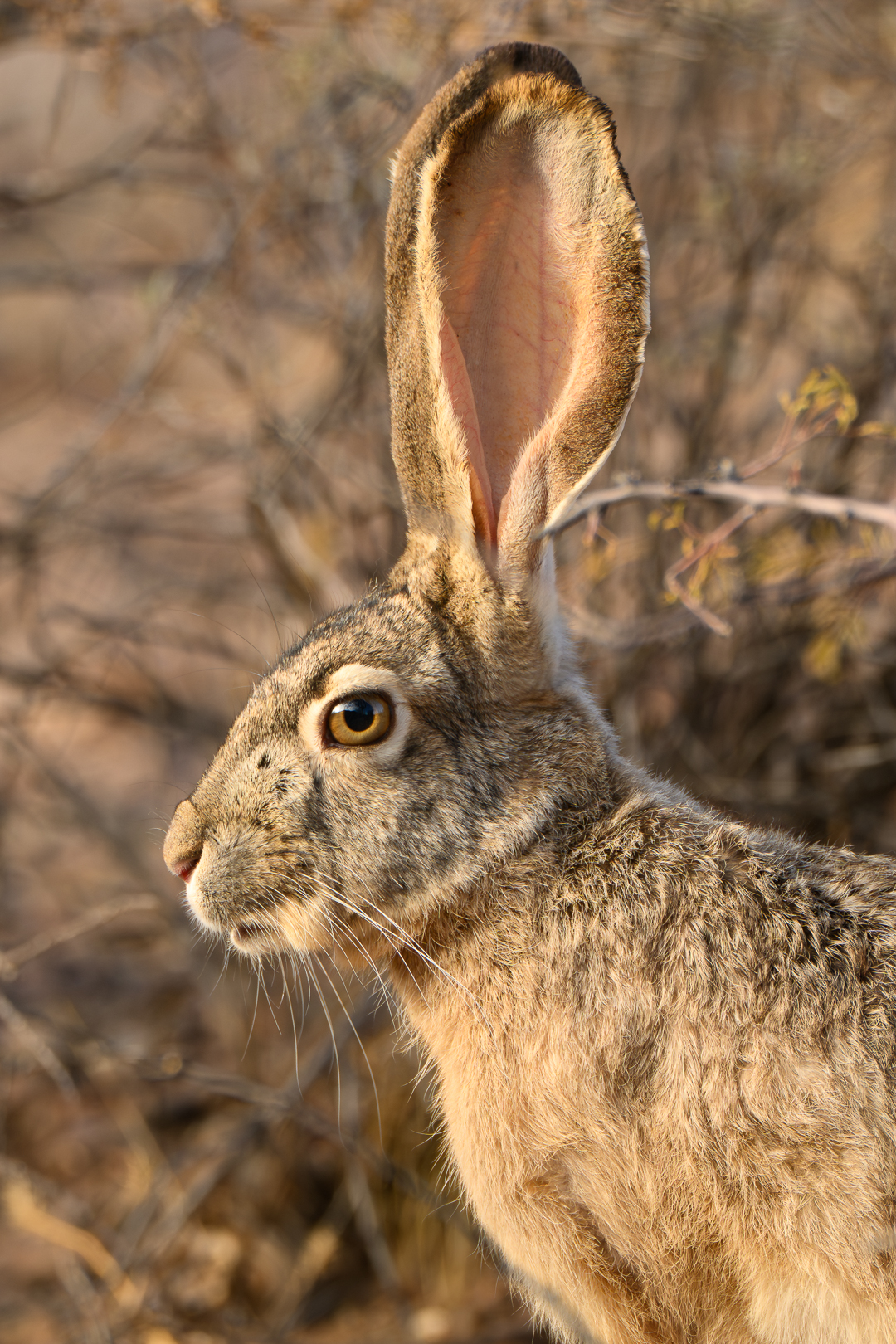 A jackrabbit gazes intently in one of the myriad small canyons of Saguaro National Park West