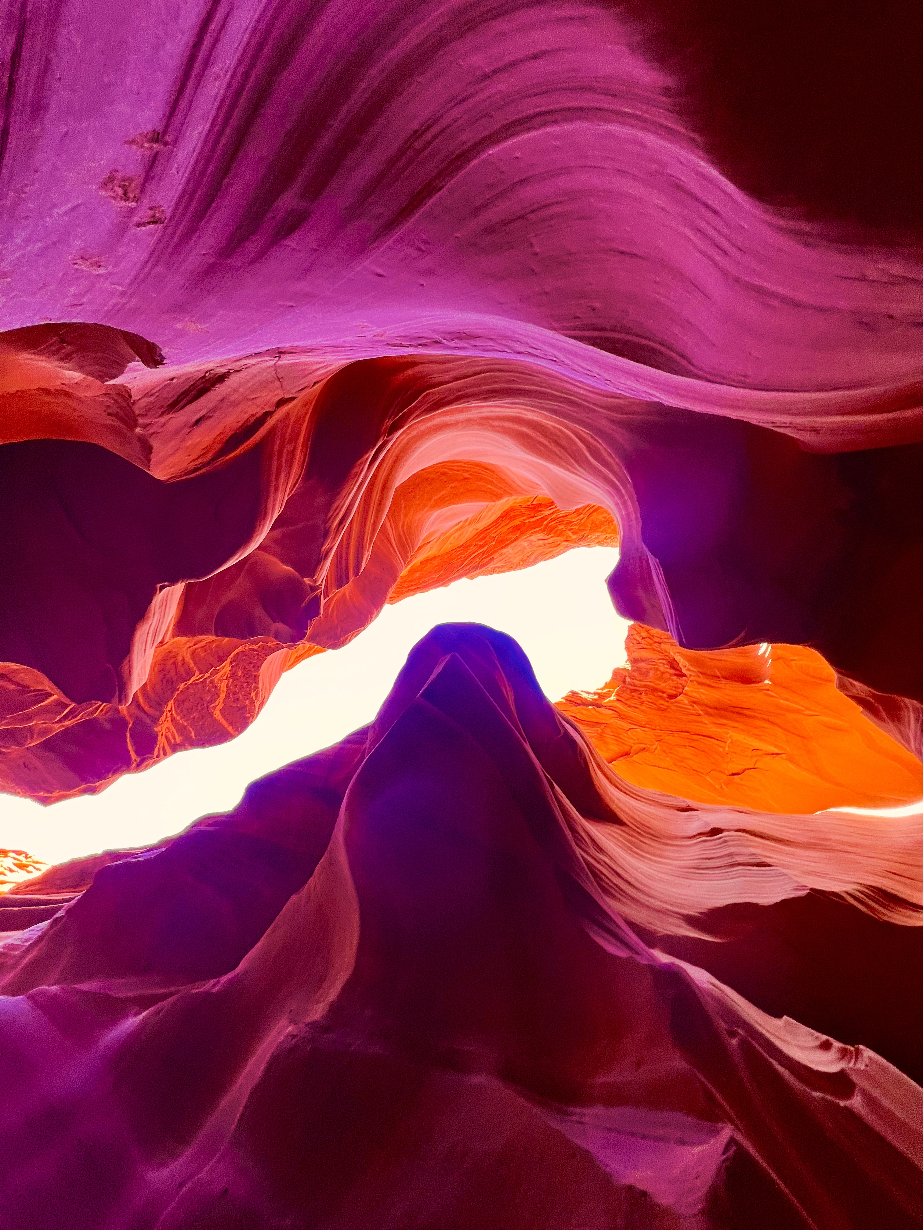 Antelope Canyon ,mid afternoon sun vibrantly reflects through the walls creating majestic hues of pink& purple.What lies beneath Dixie’s Lower Canyon puts sparkle in your eyes seeps peace into your ❤