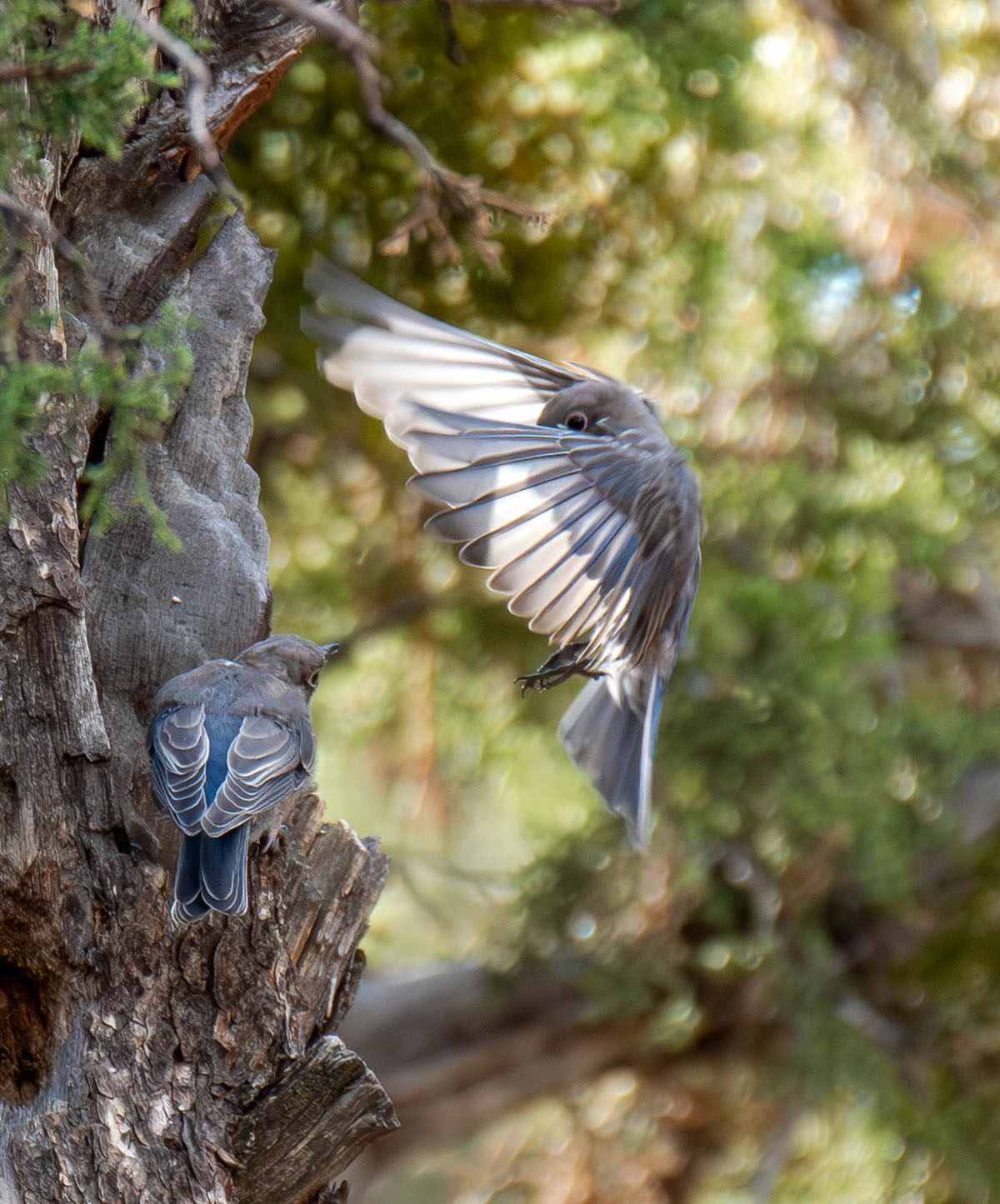 A Harris's Hawk takes oof in fight from a Palm Tree