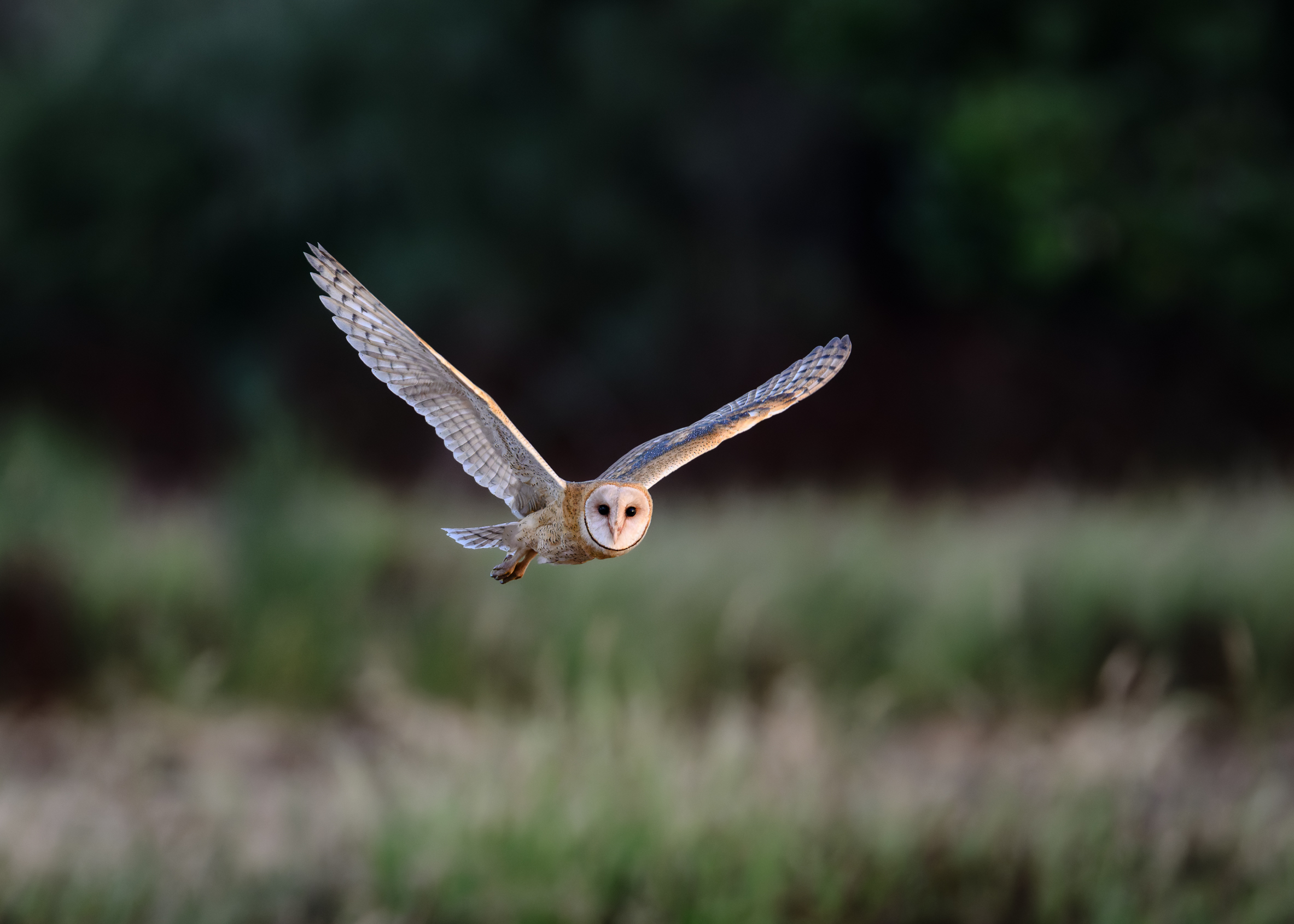 A female Northern Cardinal lifts off from a Santa Cruz Pyracantha at late sunrise in southern Arizona, her wings glowing in the warm morning light.