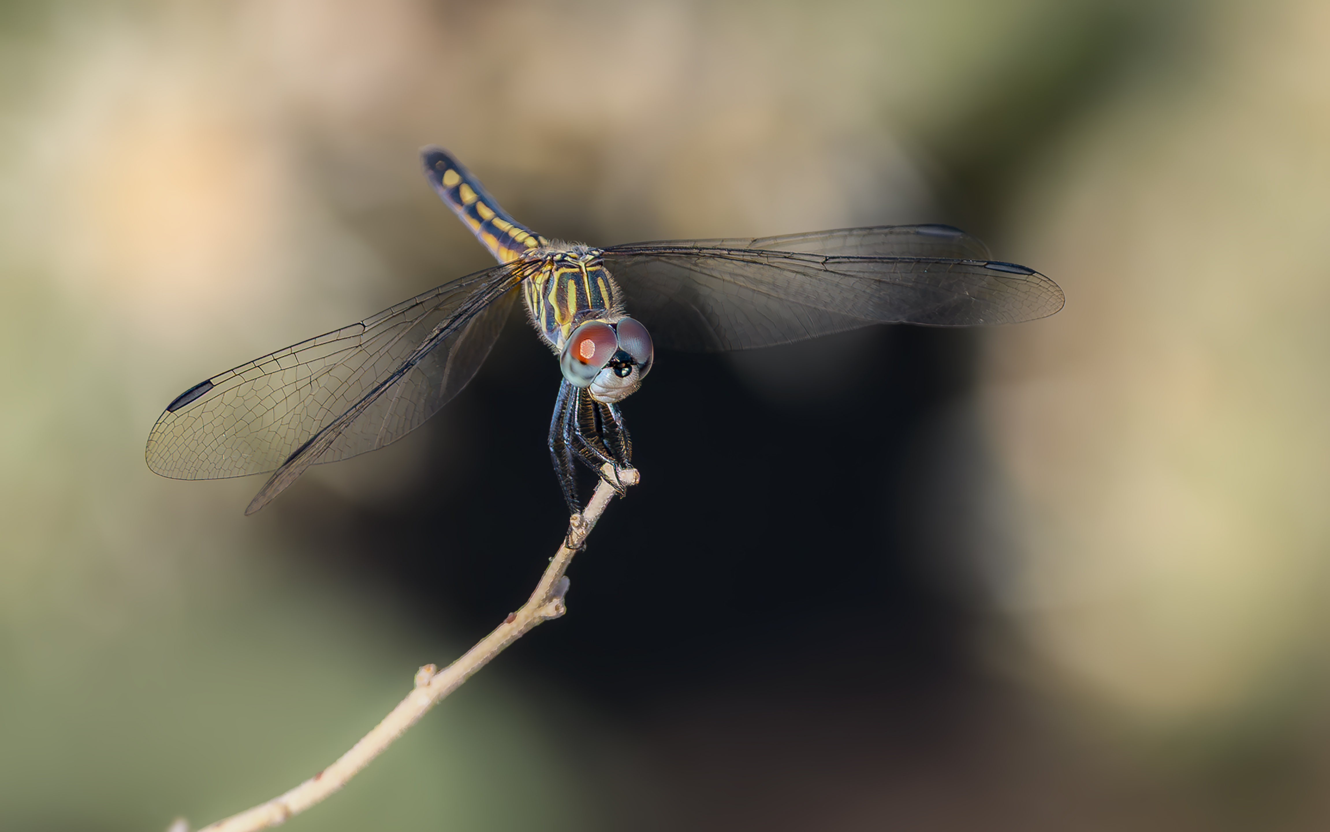 Dragonfly perching on a stick to rest, defend territory, hunt, or?