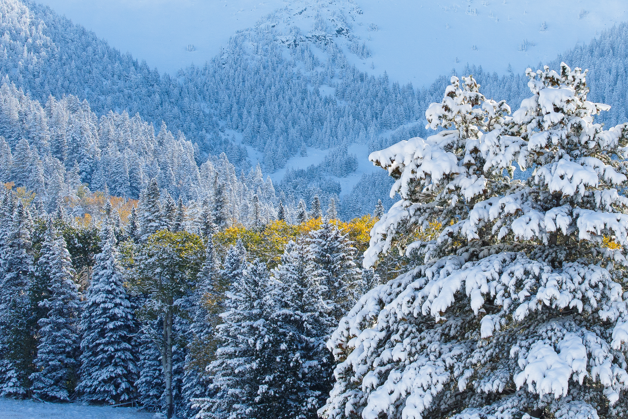 An early Winter blizzard envelopes Shoshone Point (Grand Canyon), coating everything in sight with a cold, thick, icy glaze.