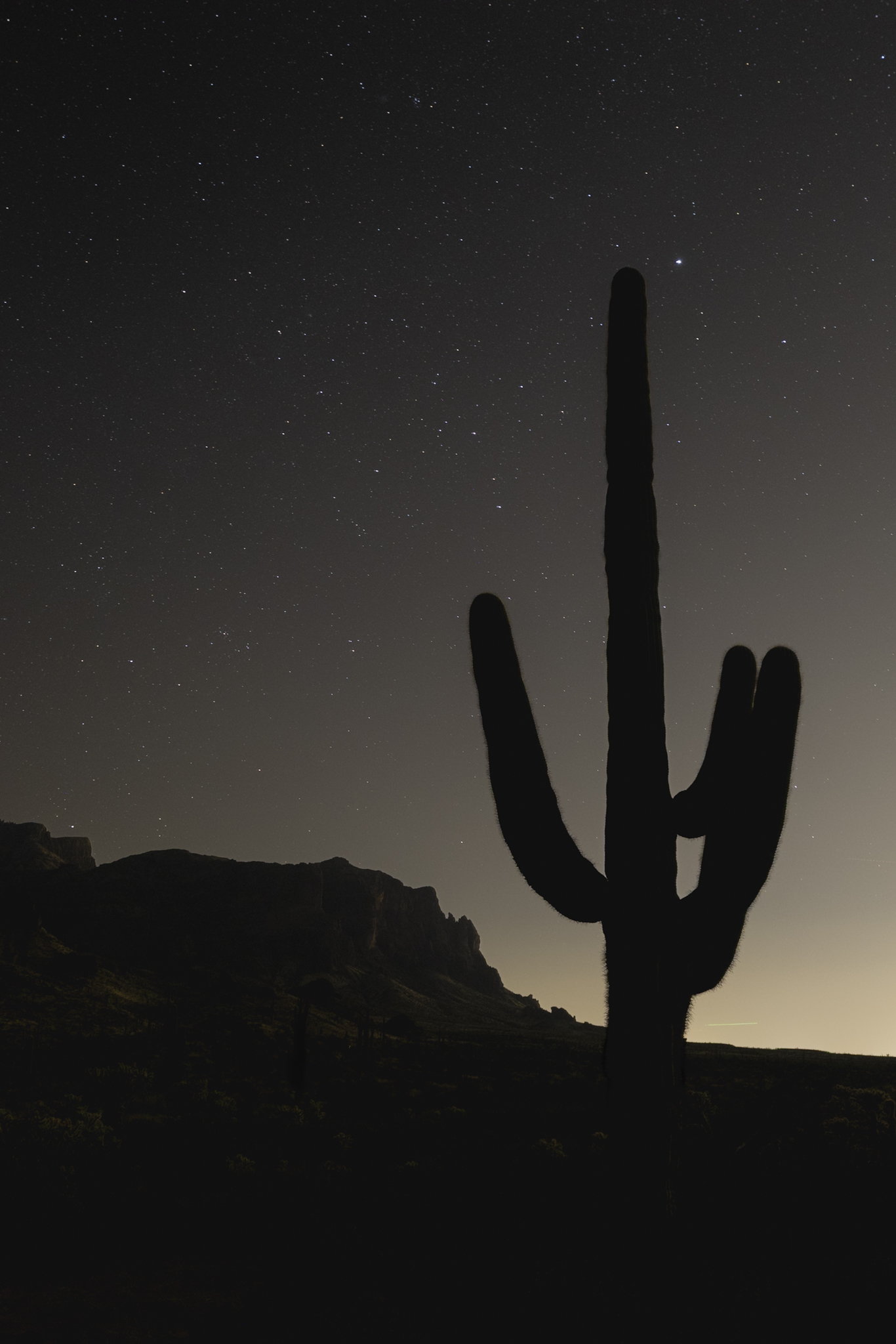 Night sky above Lost Dutchman State Park / Tonto National Forest with the glow of Phoenix behind