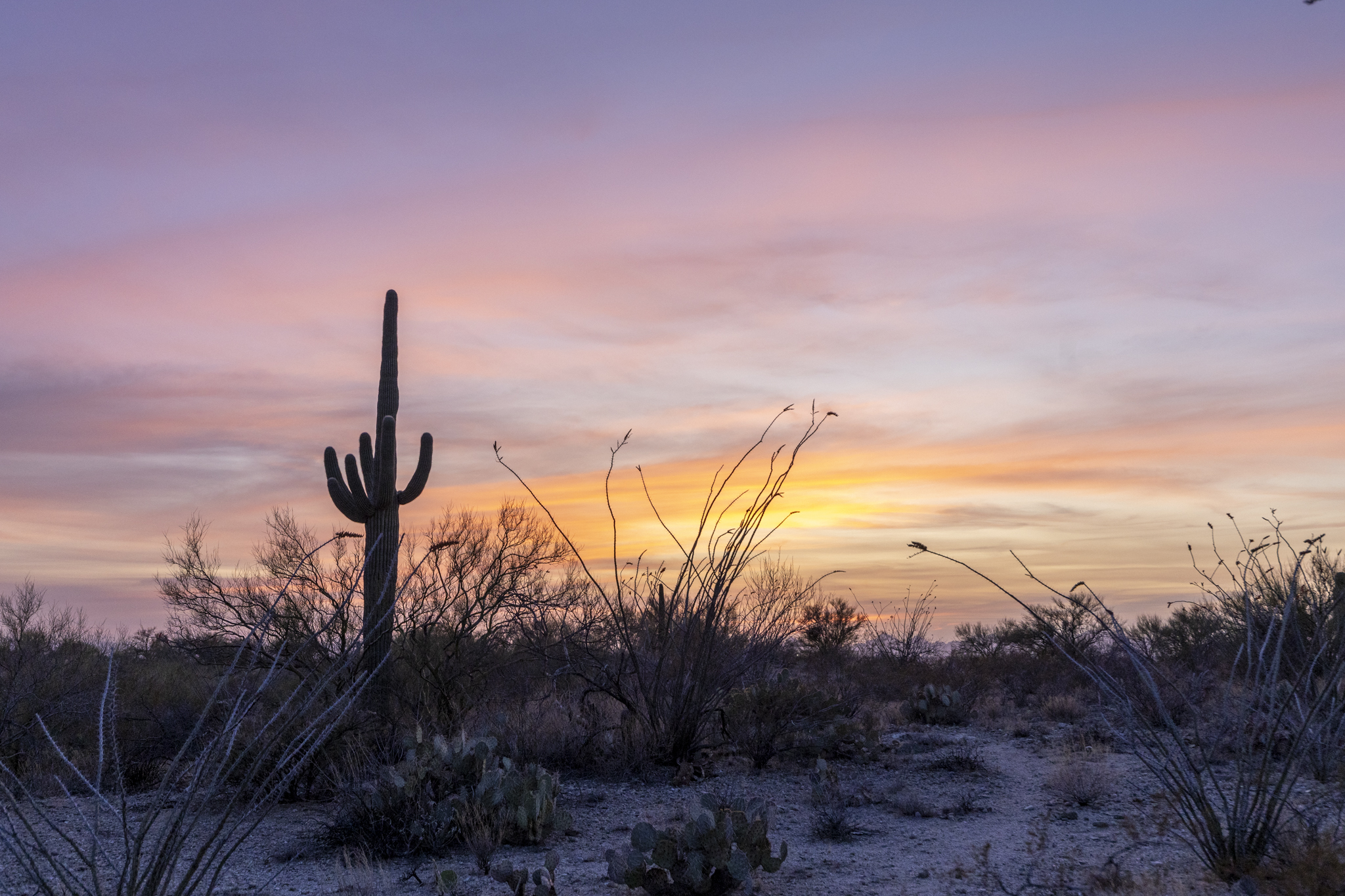 Beautiful desert sunset at Saguaro National Park