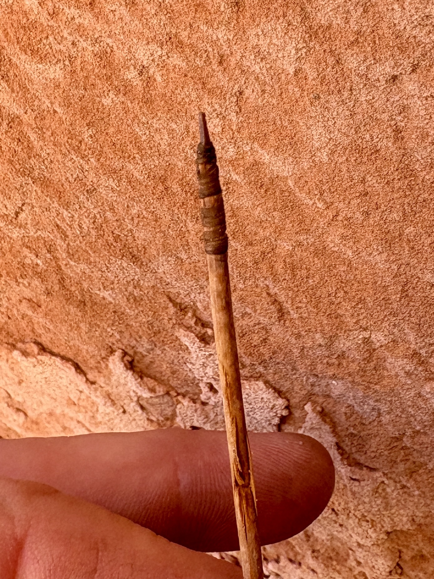 This is an ancient drill of agate fastened with sinew, it is located in northern AZ and as always, left where found.